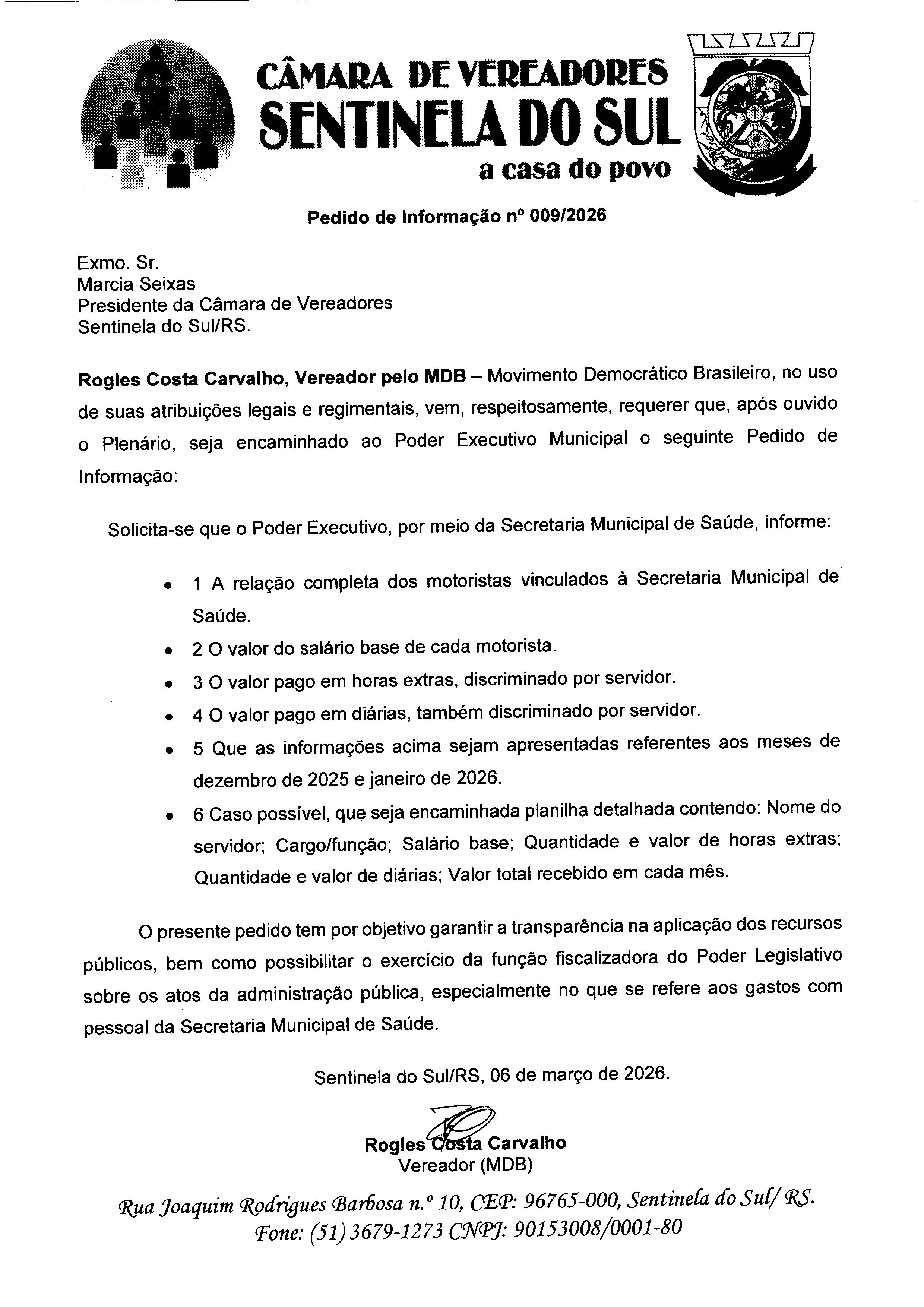 Pedido de Informação nº 009/2026