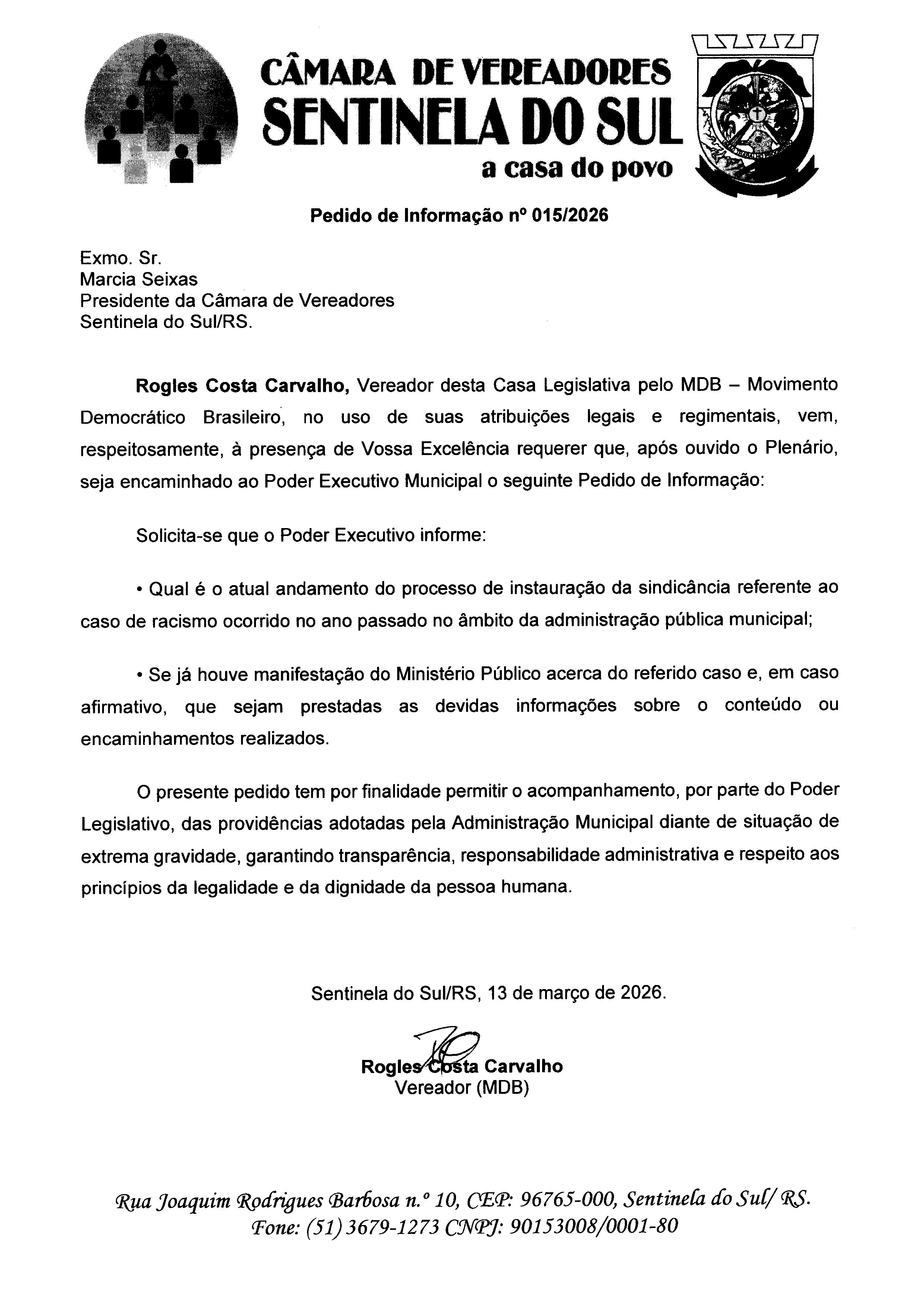 Pedido de Informação nº 015/2026