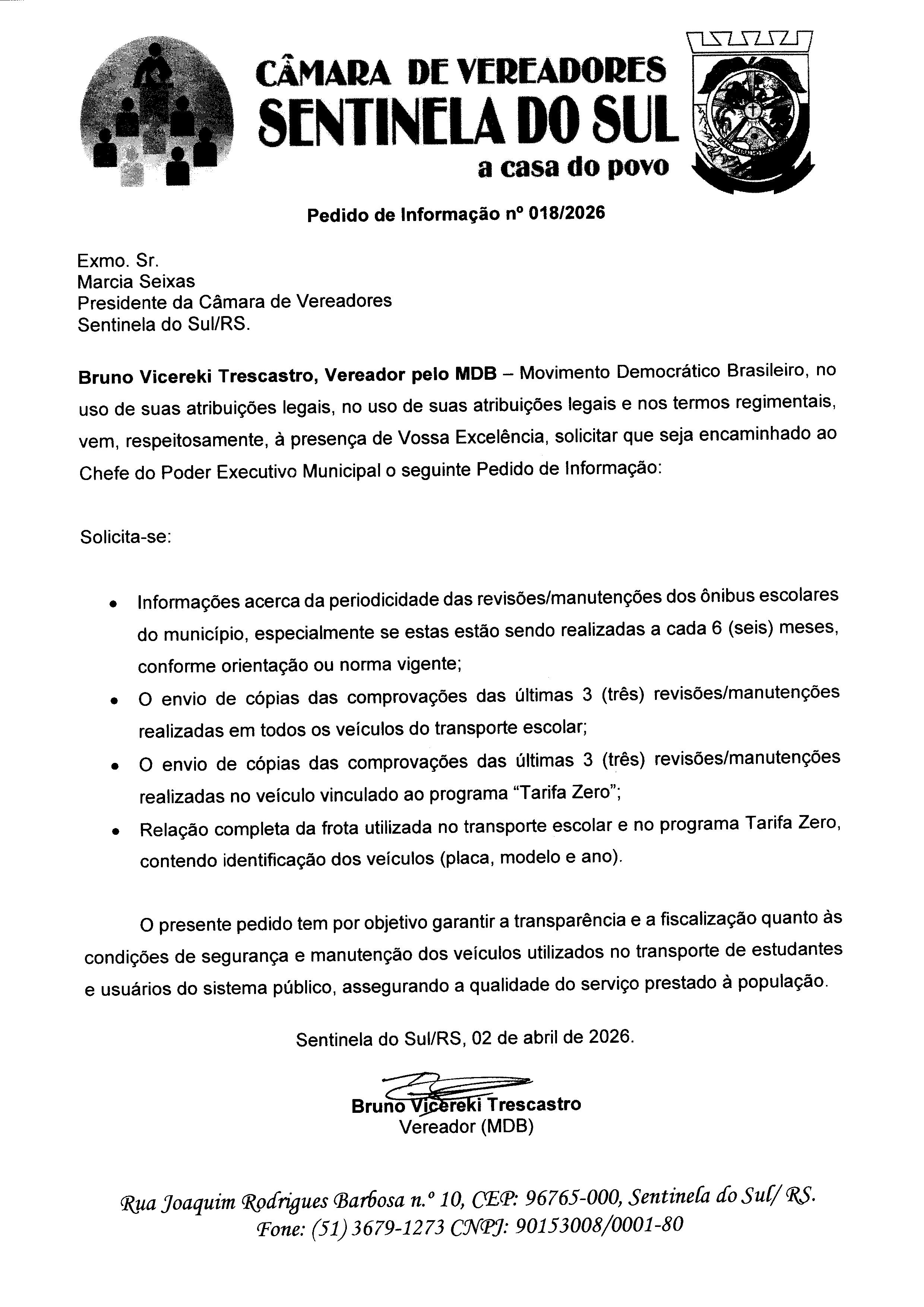 Pedido de Informação nº 018/2026