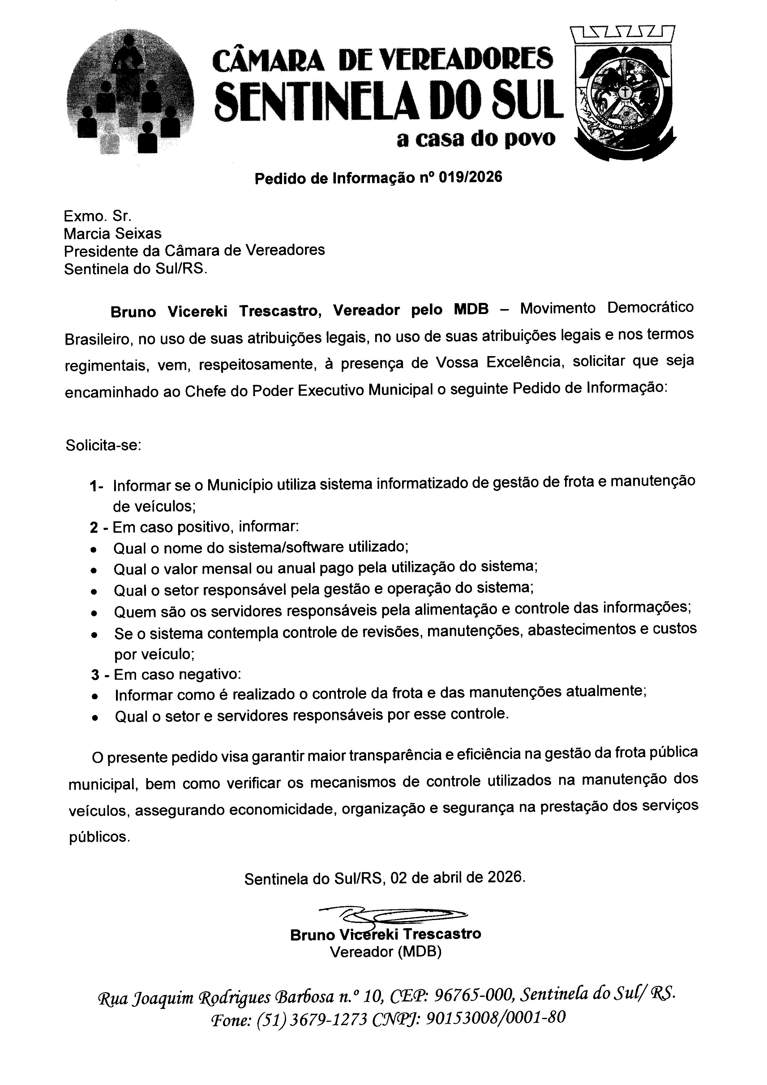 Pedido de Informação nº 019/2026