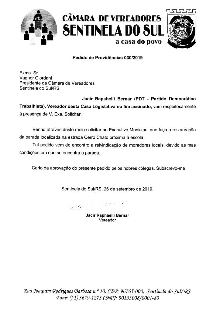 PEDIDO DE PROVIDÊNCIAS 030/2019