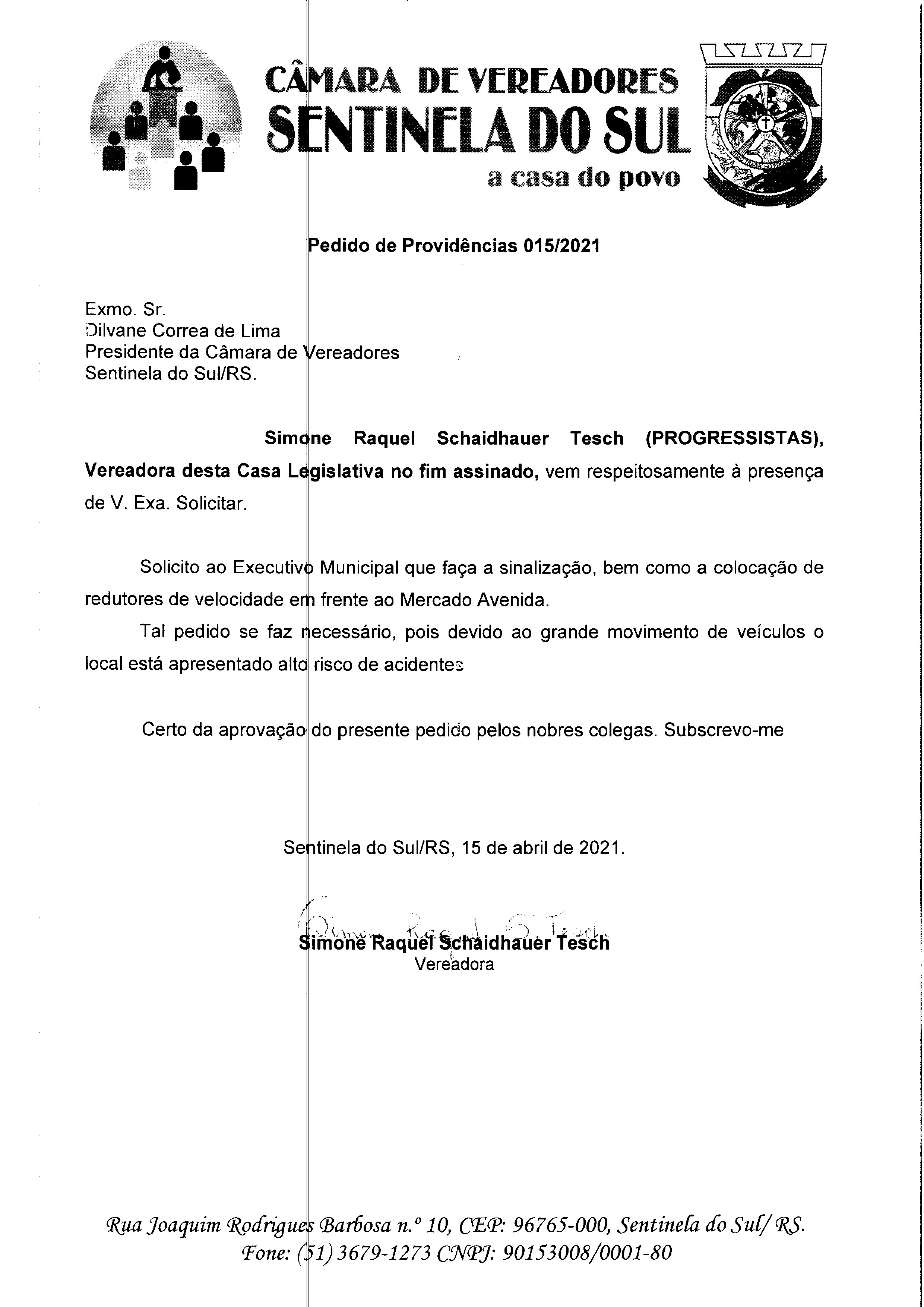 Pedido de Providencias de autoria da vereadora Simone Raquel Schaidhauer Tesch