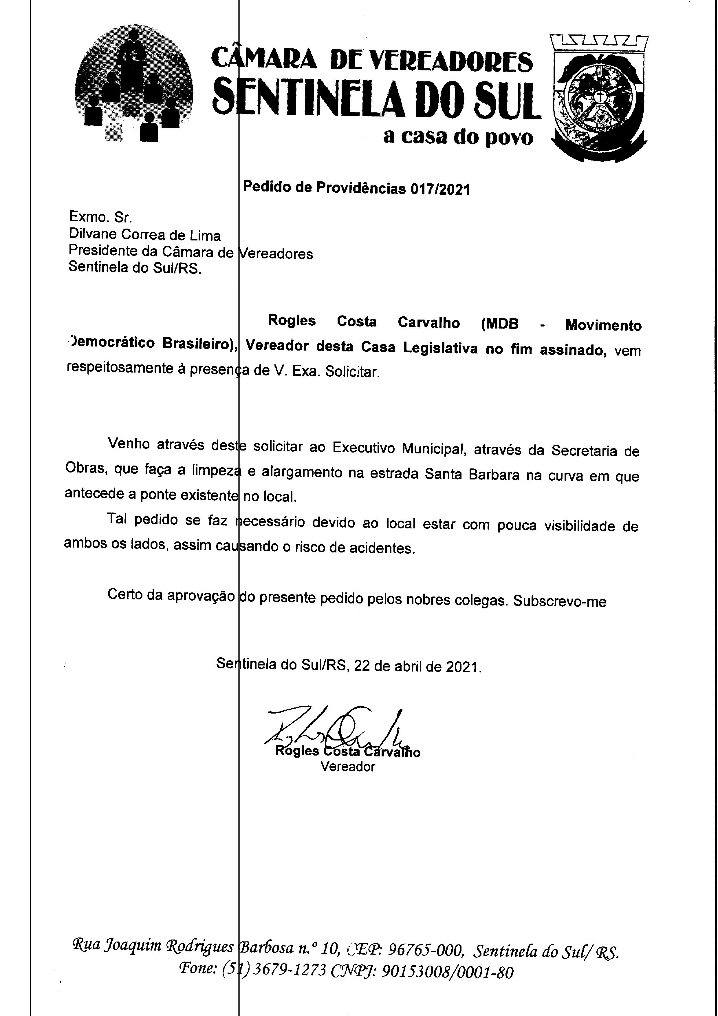 Pedido de Providências nº 017/2021