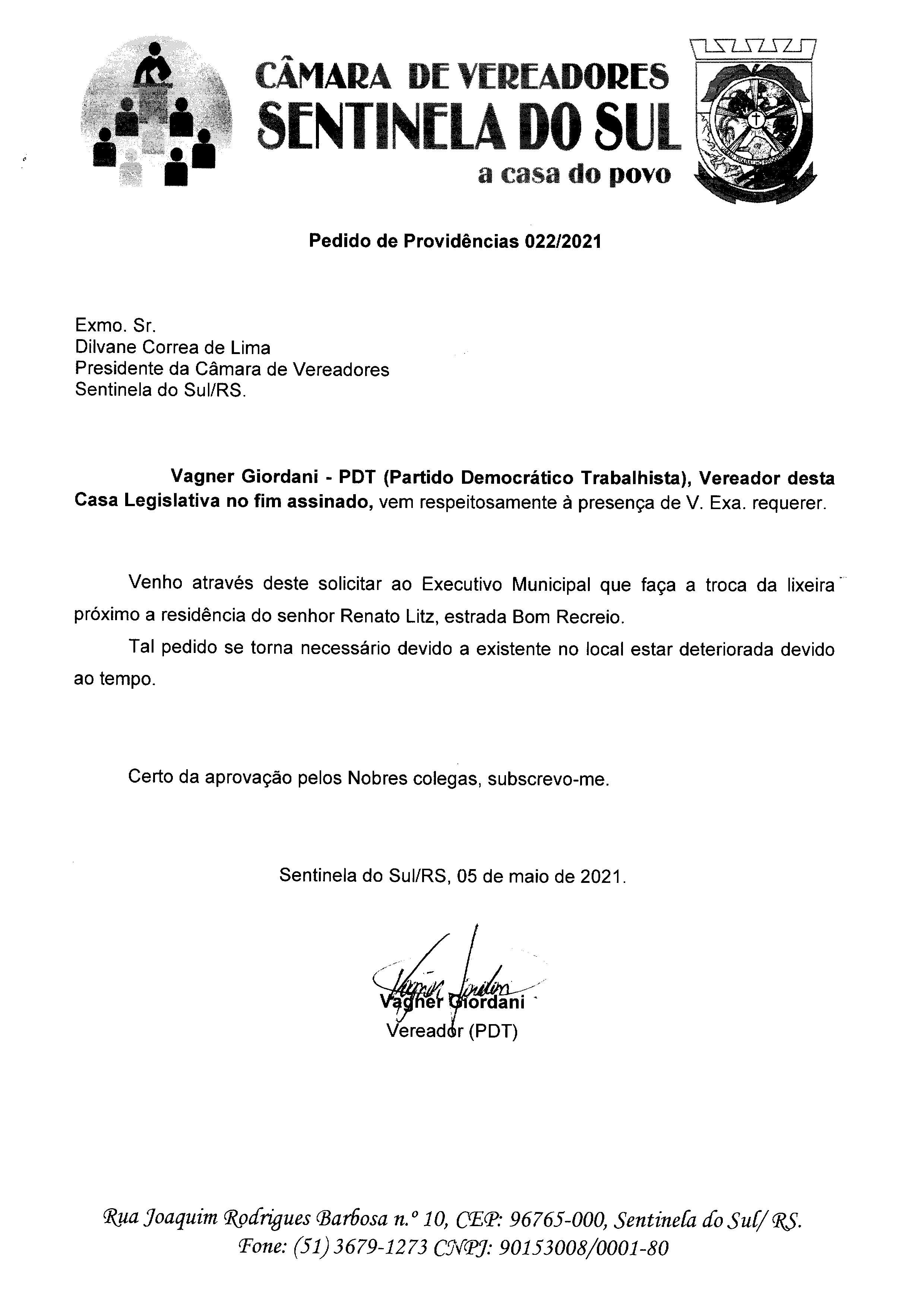 Pedido de Providências nº 022/2021