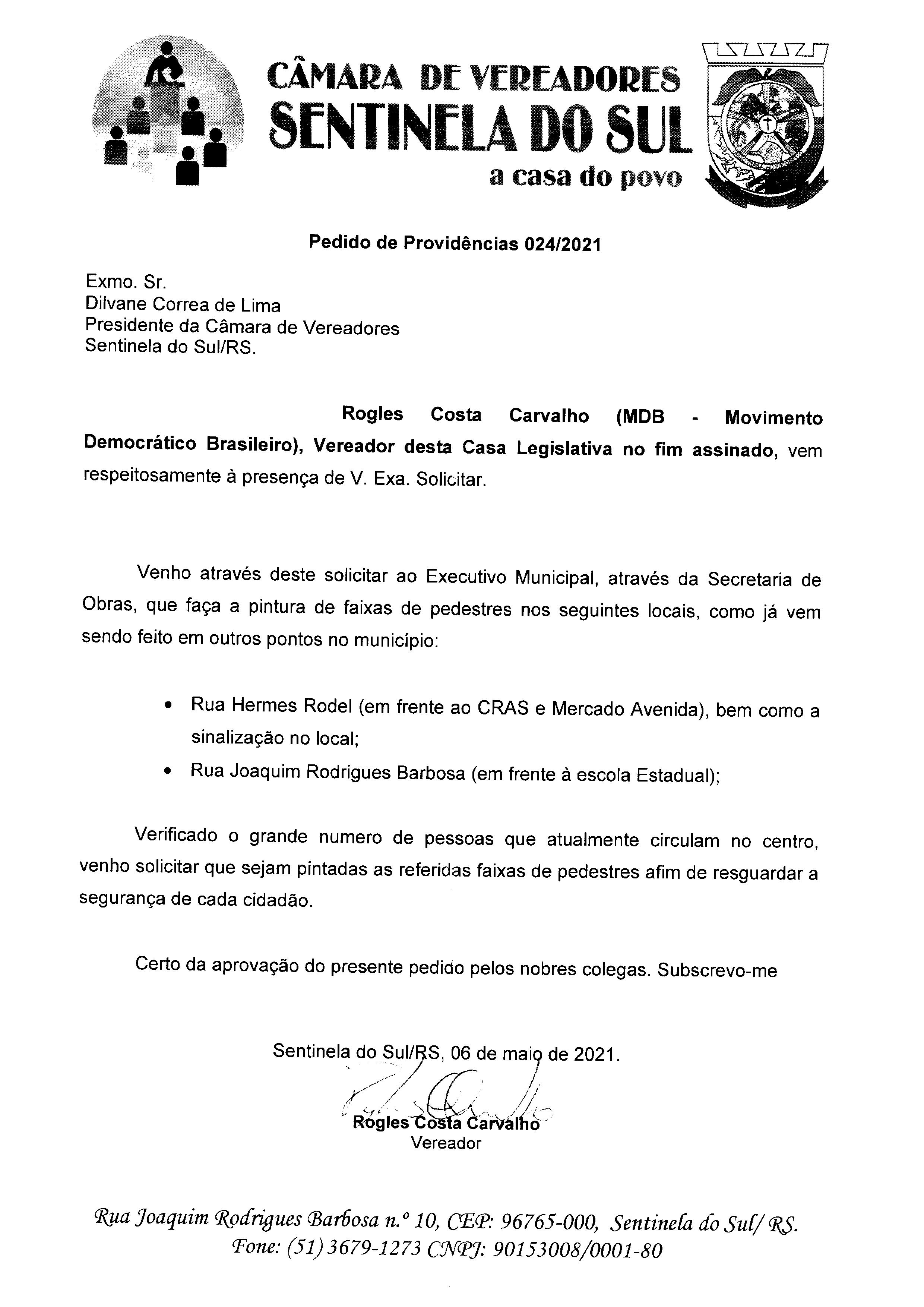 Pedido de Providências nº 024/2021