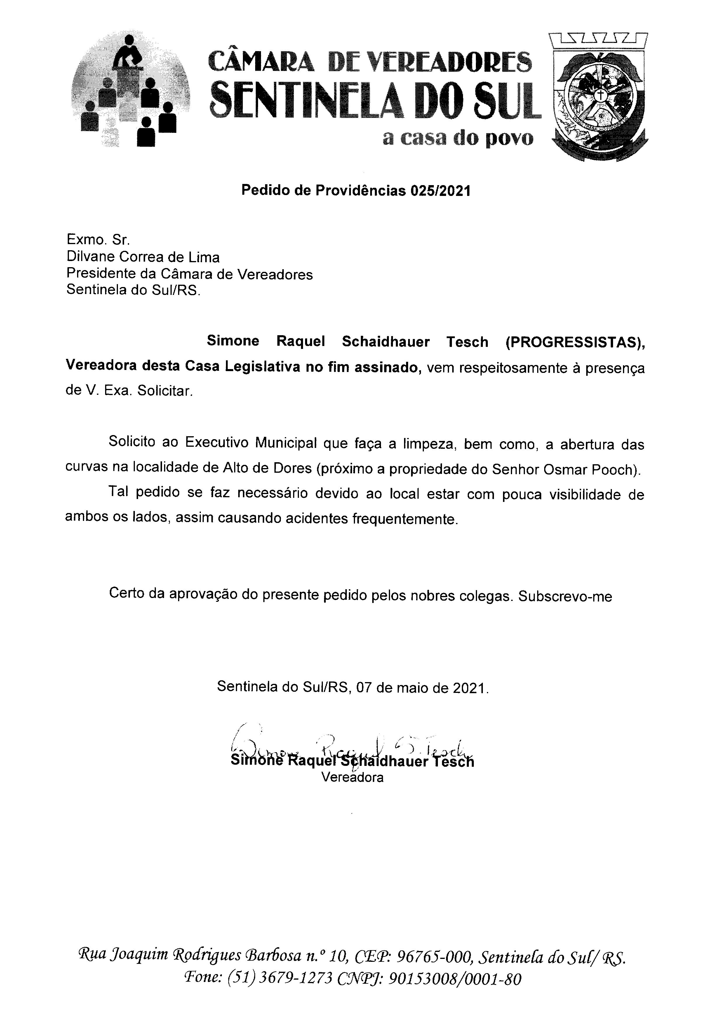 Pedido de Providências de autoria da Vereadora Simone Raquel Schaidhauer Tesch