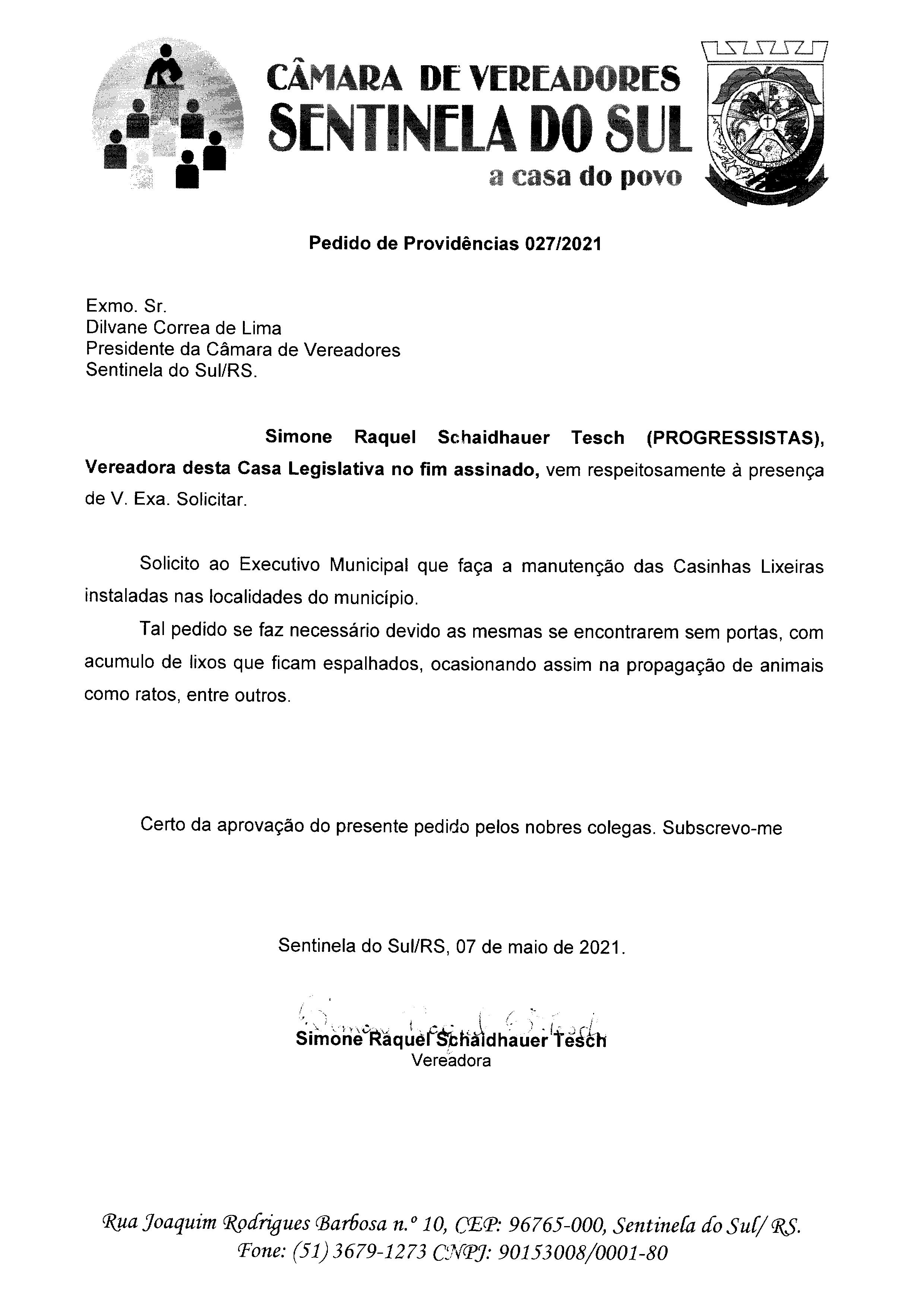 Pedido de Providências nº 027/2021