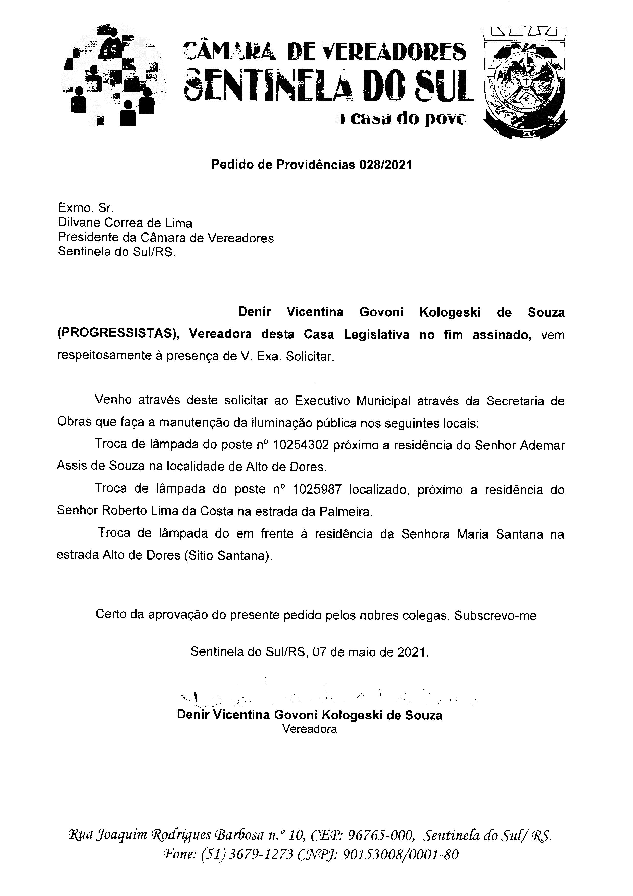 Pedido de Providências de autoria da Vereadora Denir Vicentina Govoni Kologeski de Souza