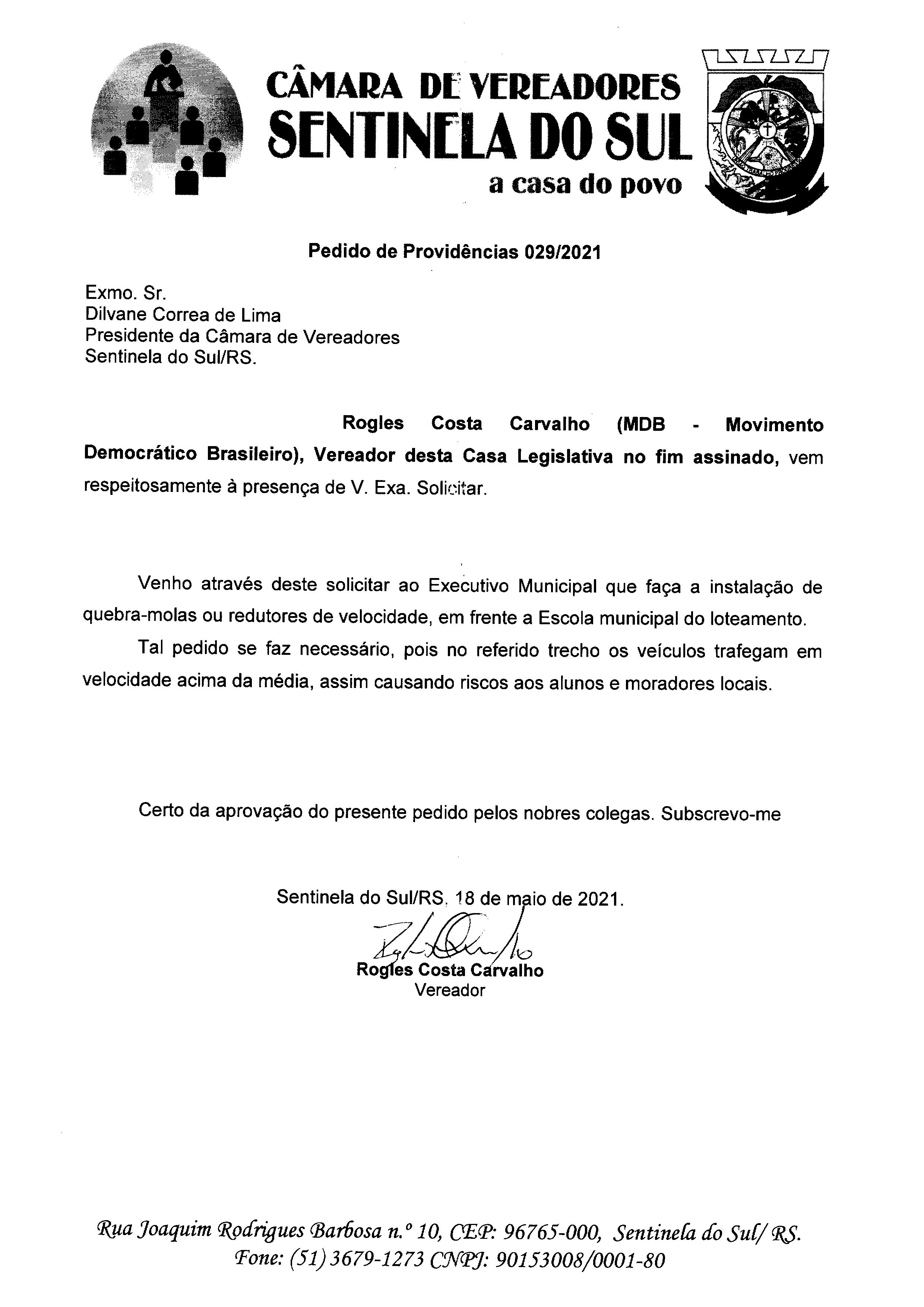 Pedido de Providências de autoria do Vereador Rogles Costa Carvalho