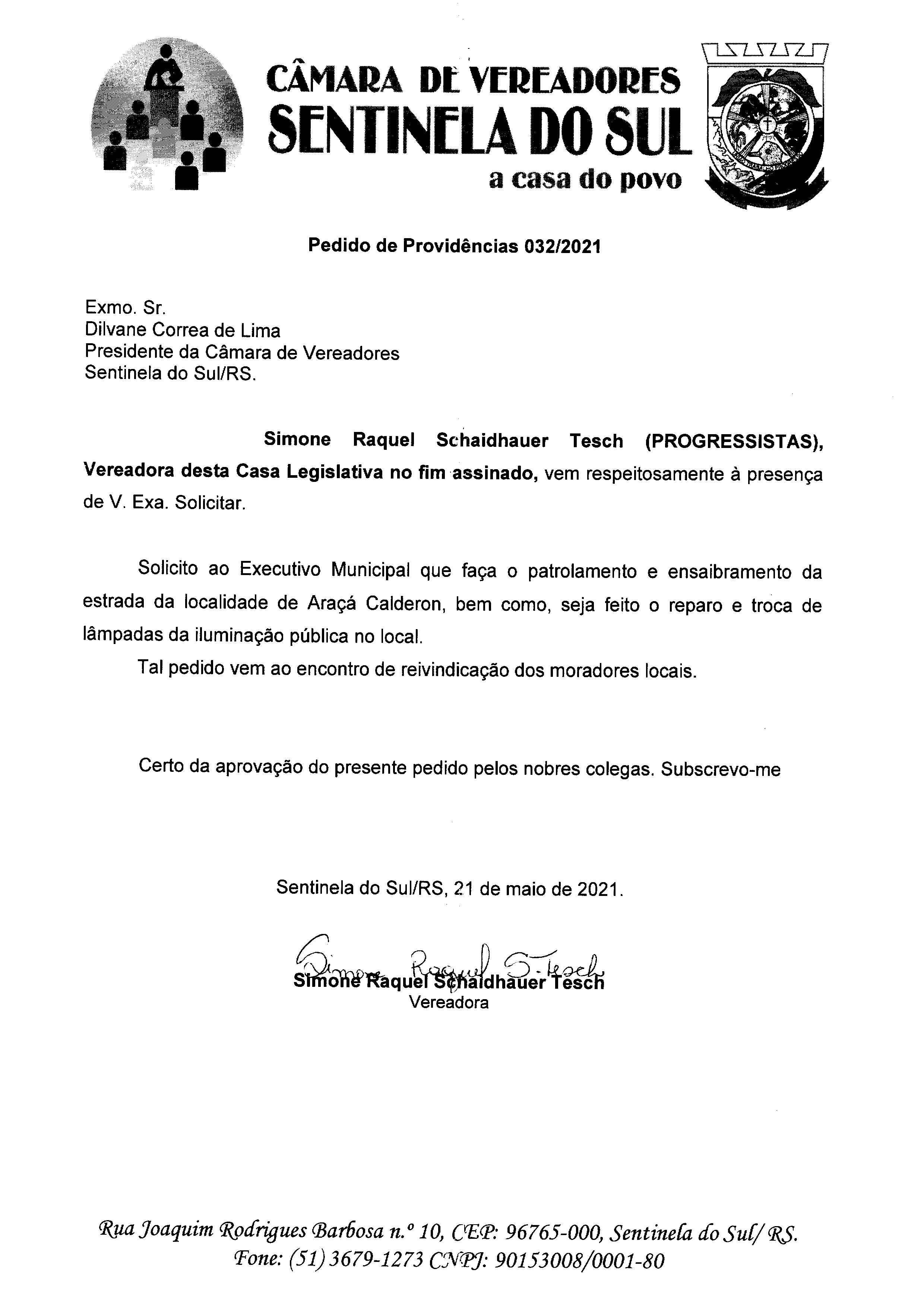 Pedido de Providências de autoria da vereadora Simone Raquel Schaidhauer Tesch