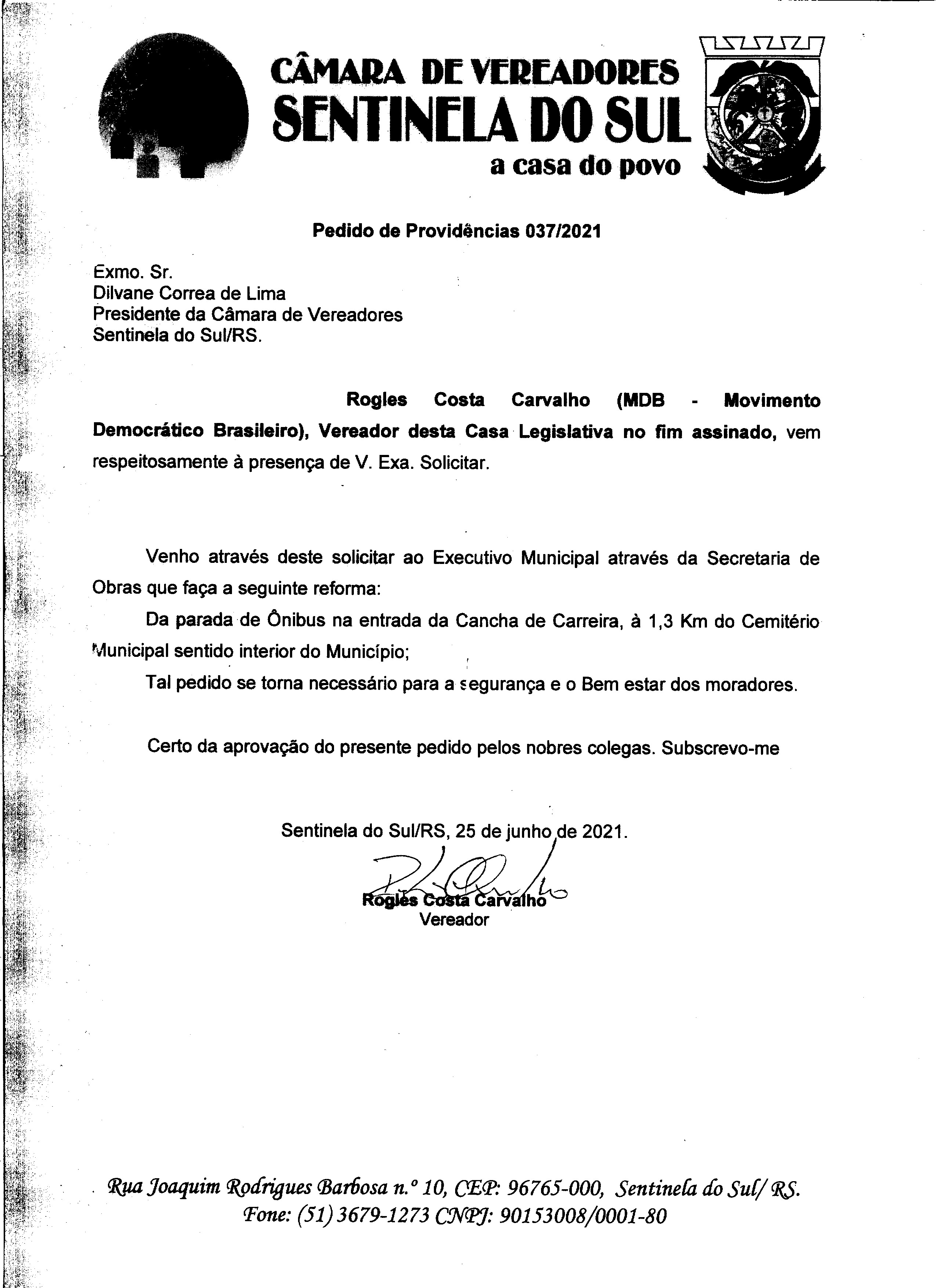 Pedido de Providências nº 037/2021