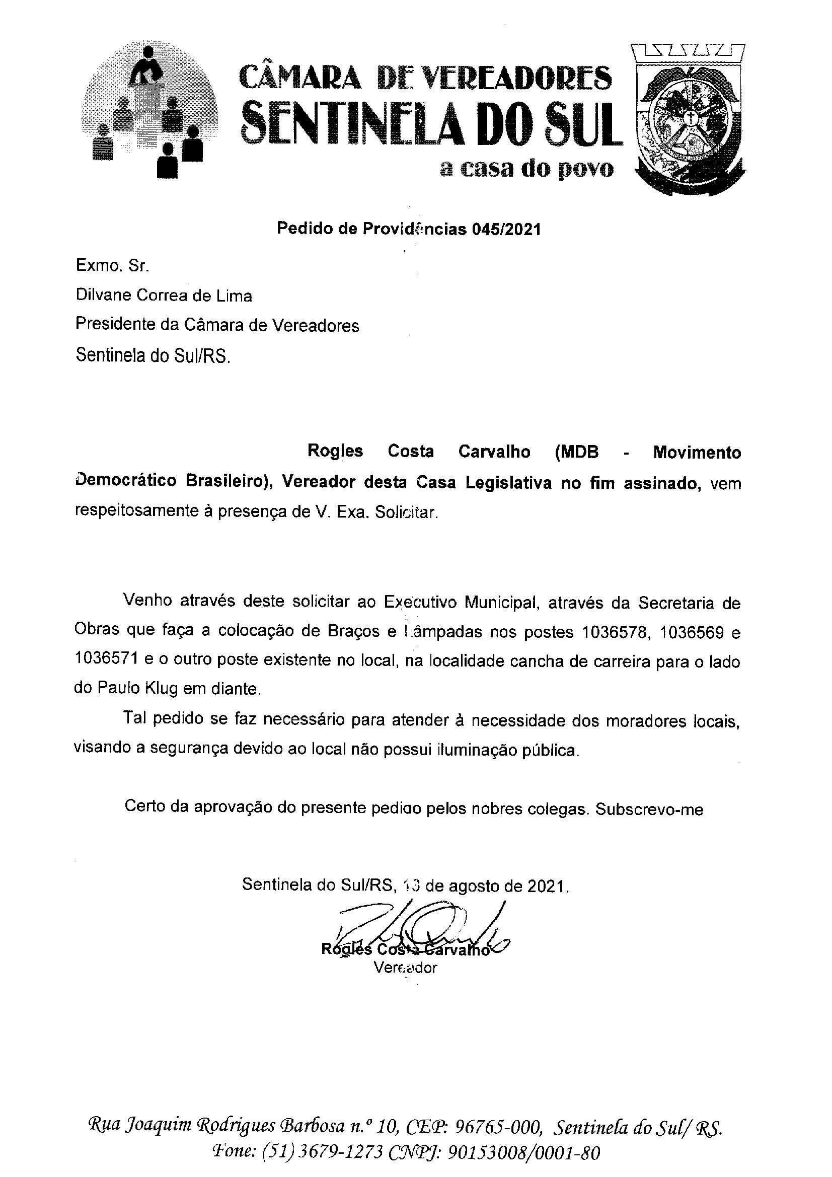 Pedido de Providências nº 045/2021