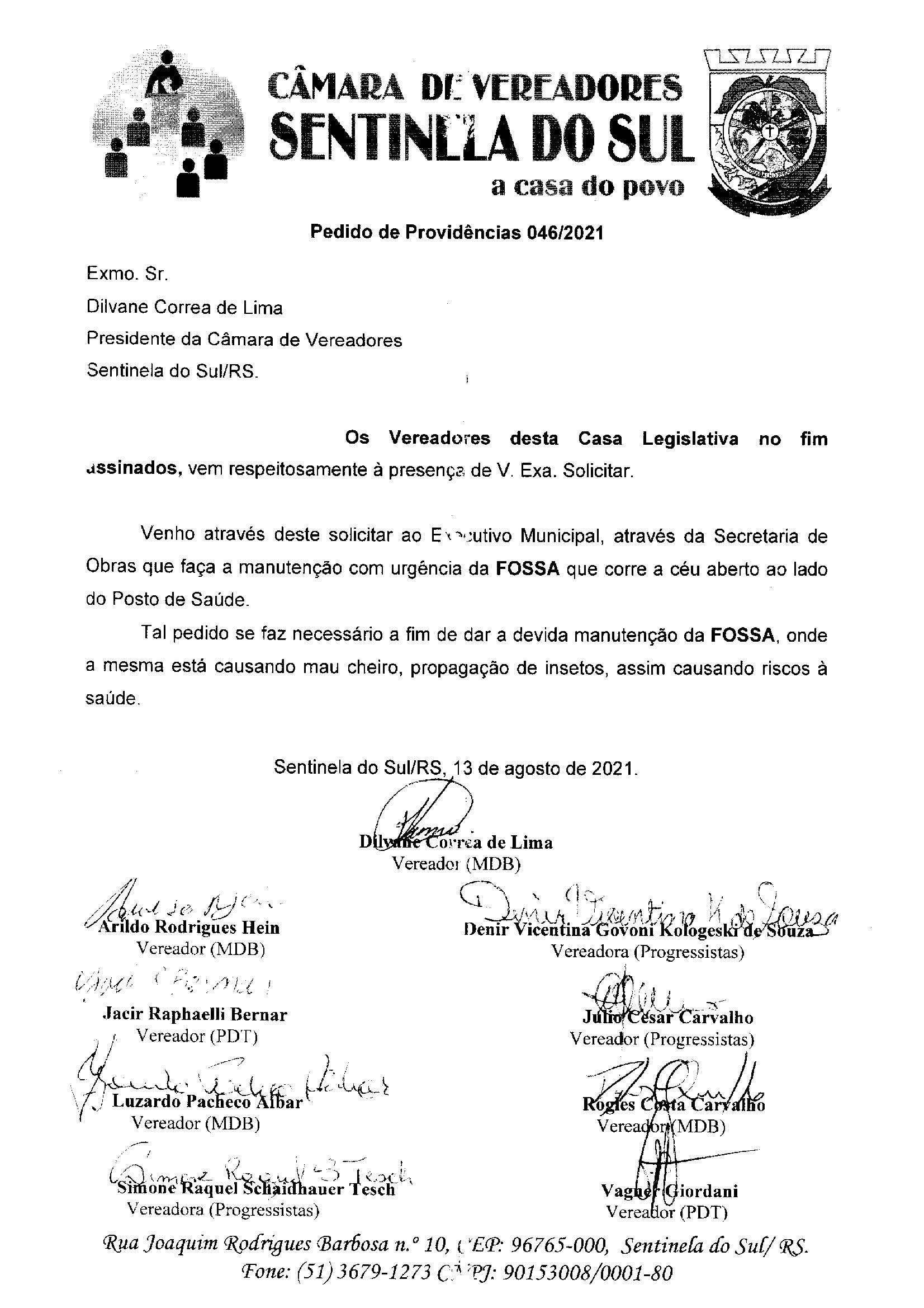 Pedido de Providências nº 046/2021