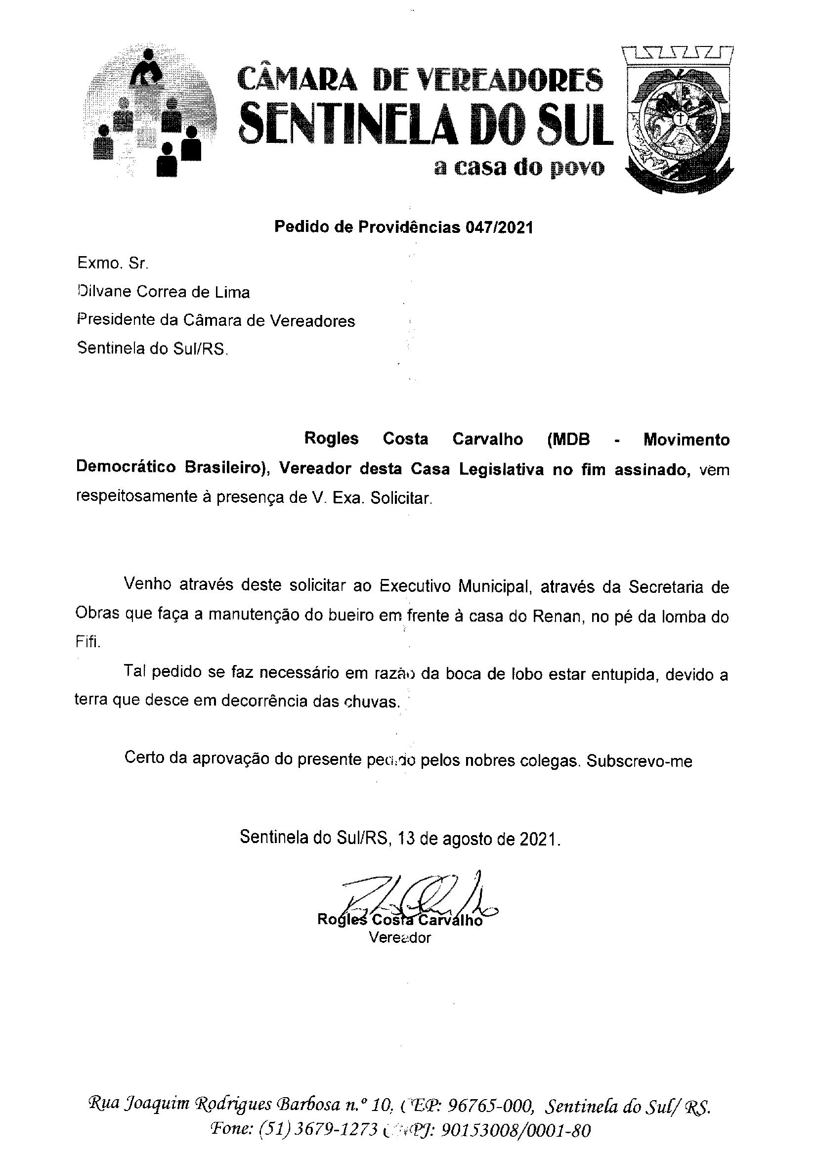 Pedido de Providências nº 047/2021