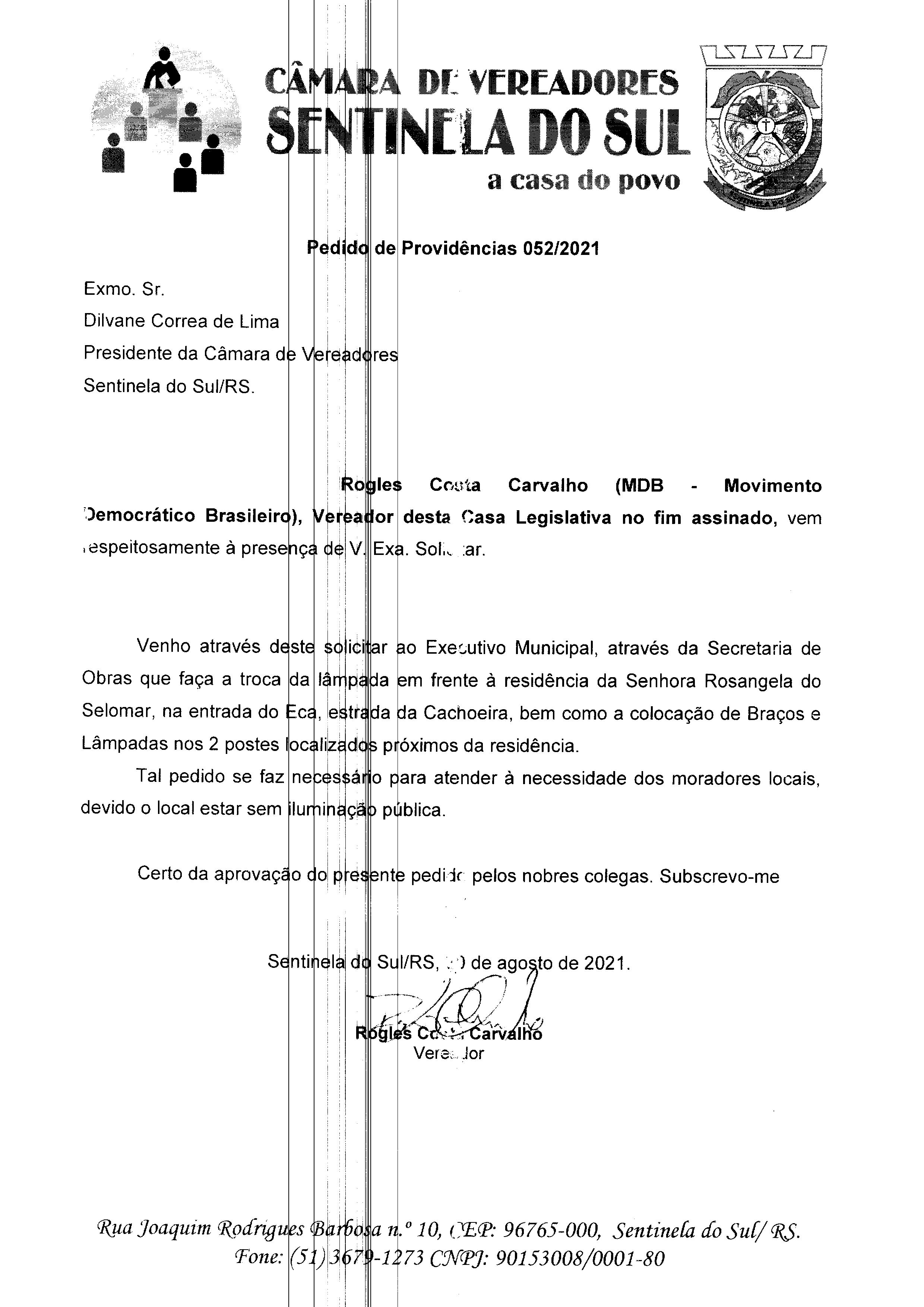 Pedido de Providências nº 052/2021