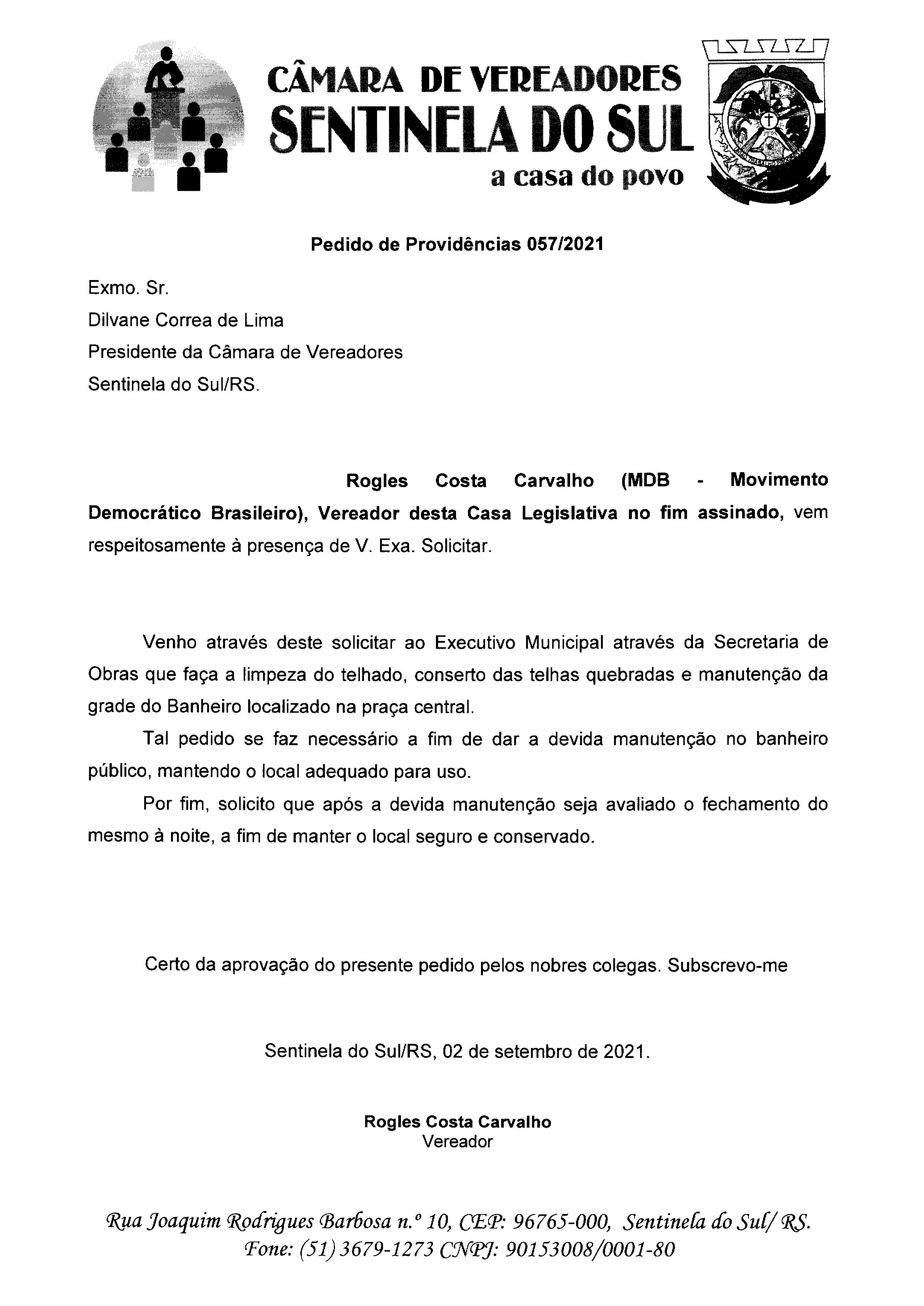 Pedido de Providências nº 057/2021