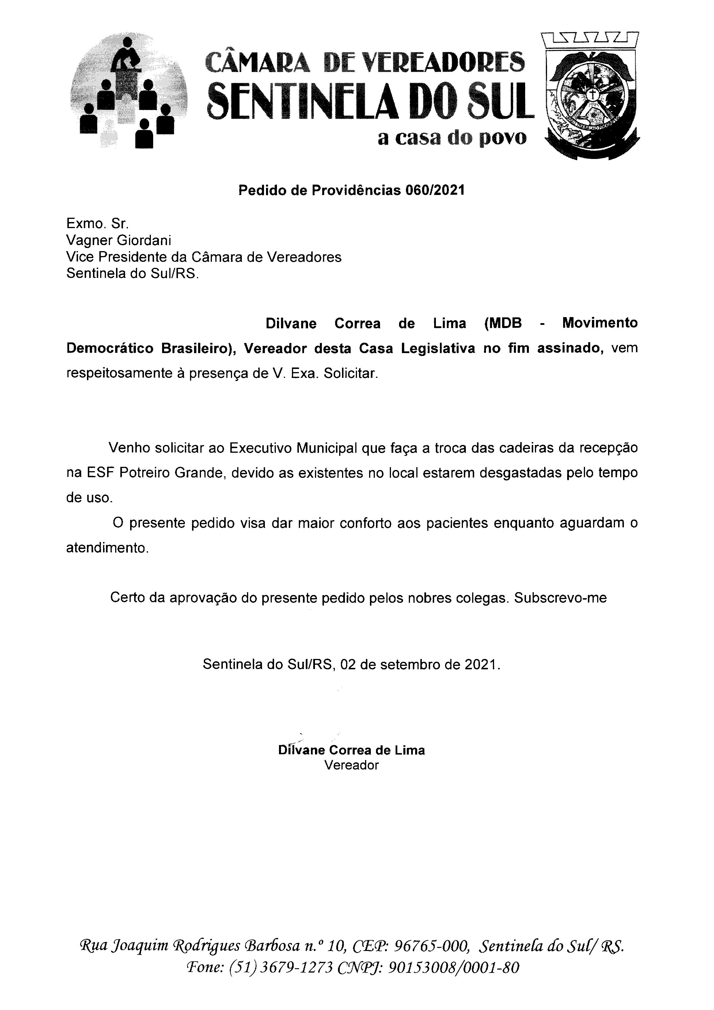 Pedido de Providências de autoria do Vereador Dilvane Correa de Lima