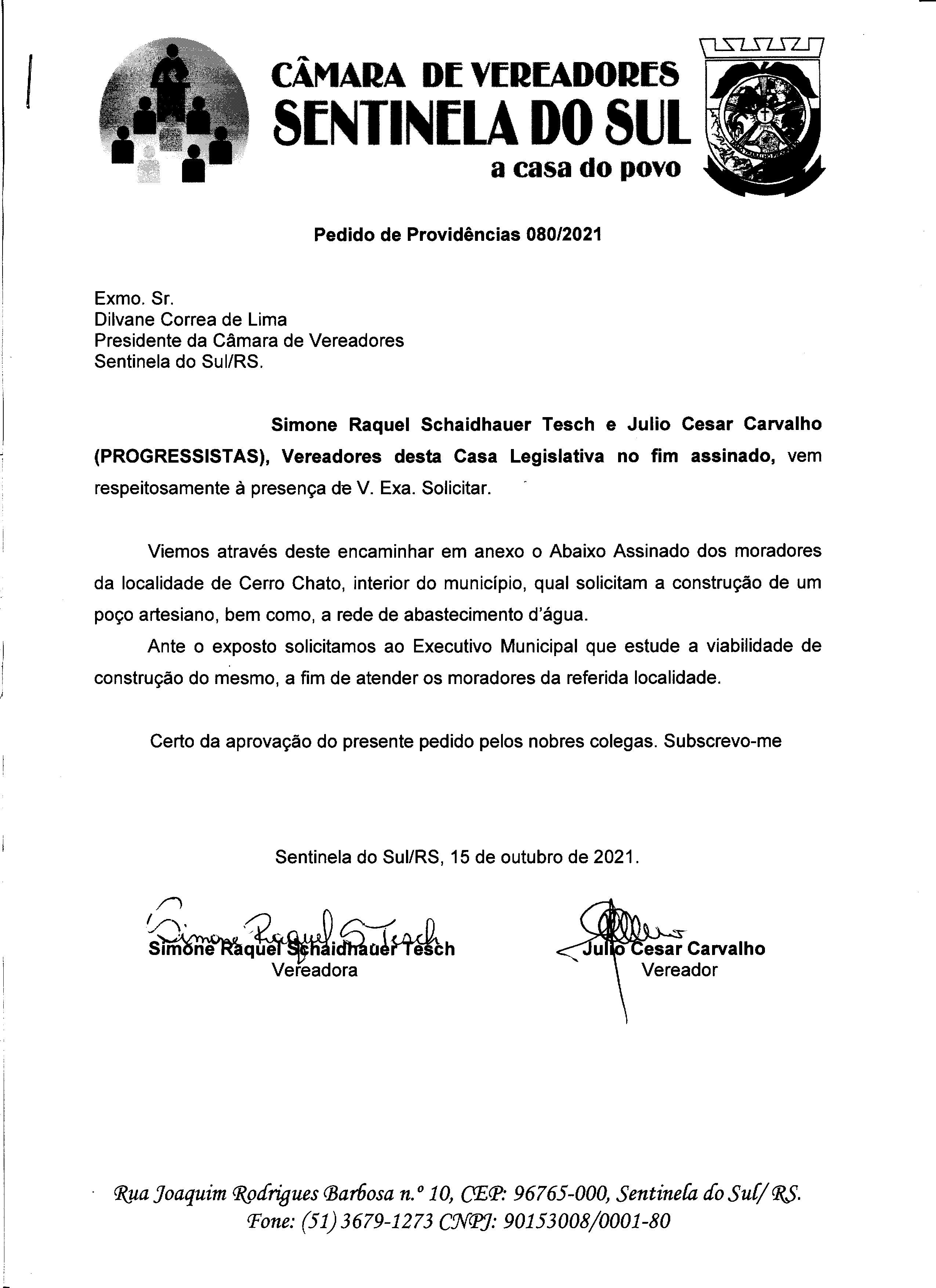Pedido de Providências de autoria da Vereadora Simone Raquel Schaidhauer Tesch e Vereador Julio Cesar Carvalho