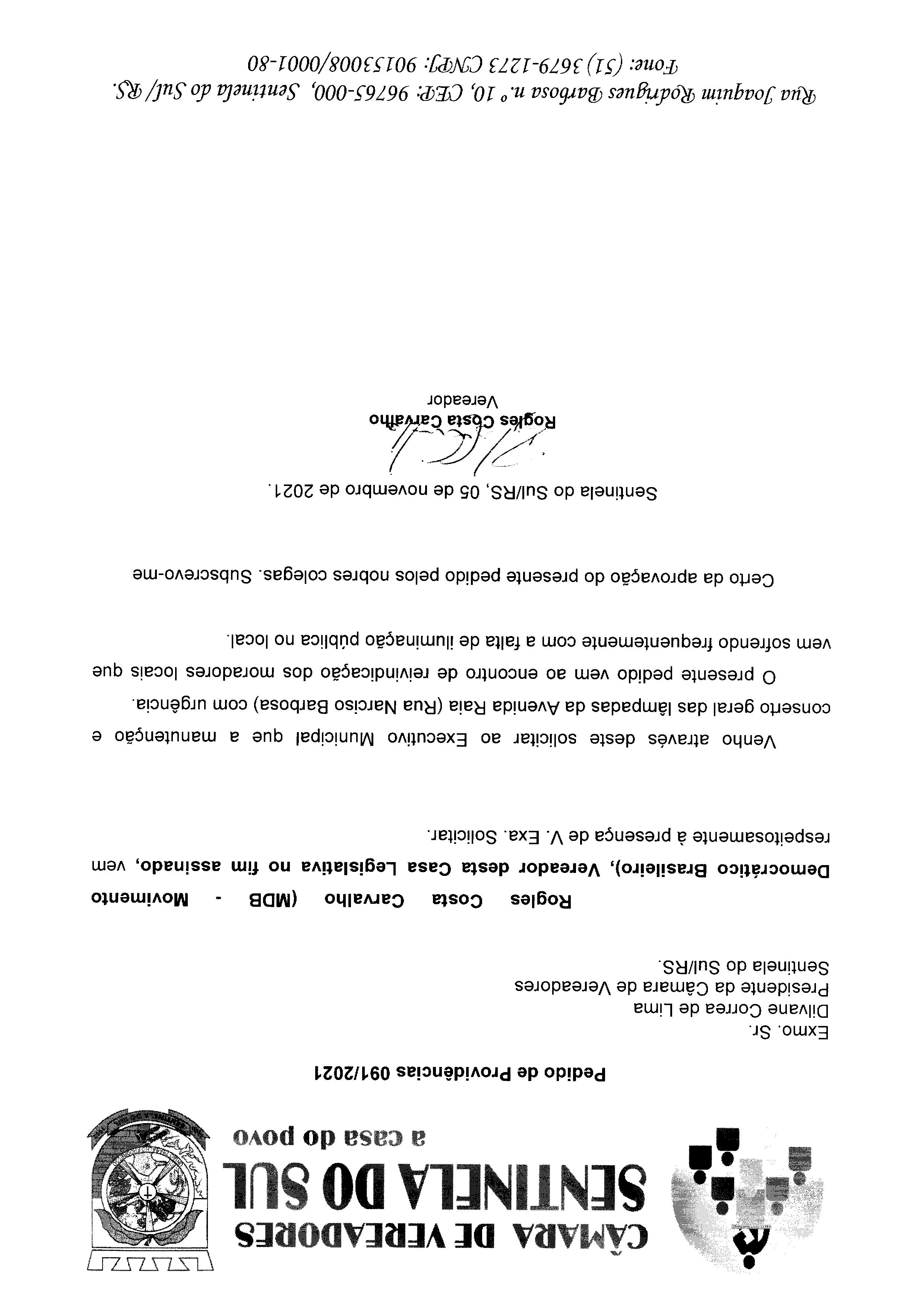 Pedido de Providências de autoria do vereador Rogles Costa Carvalho
