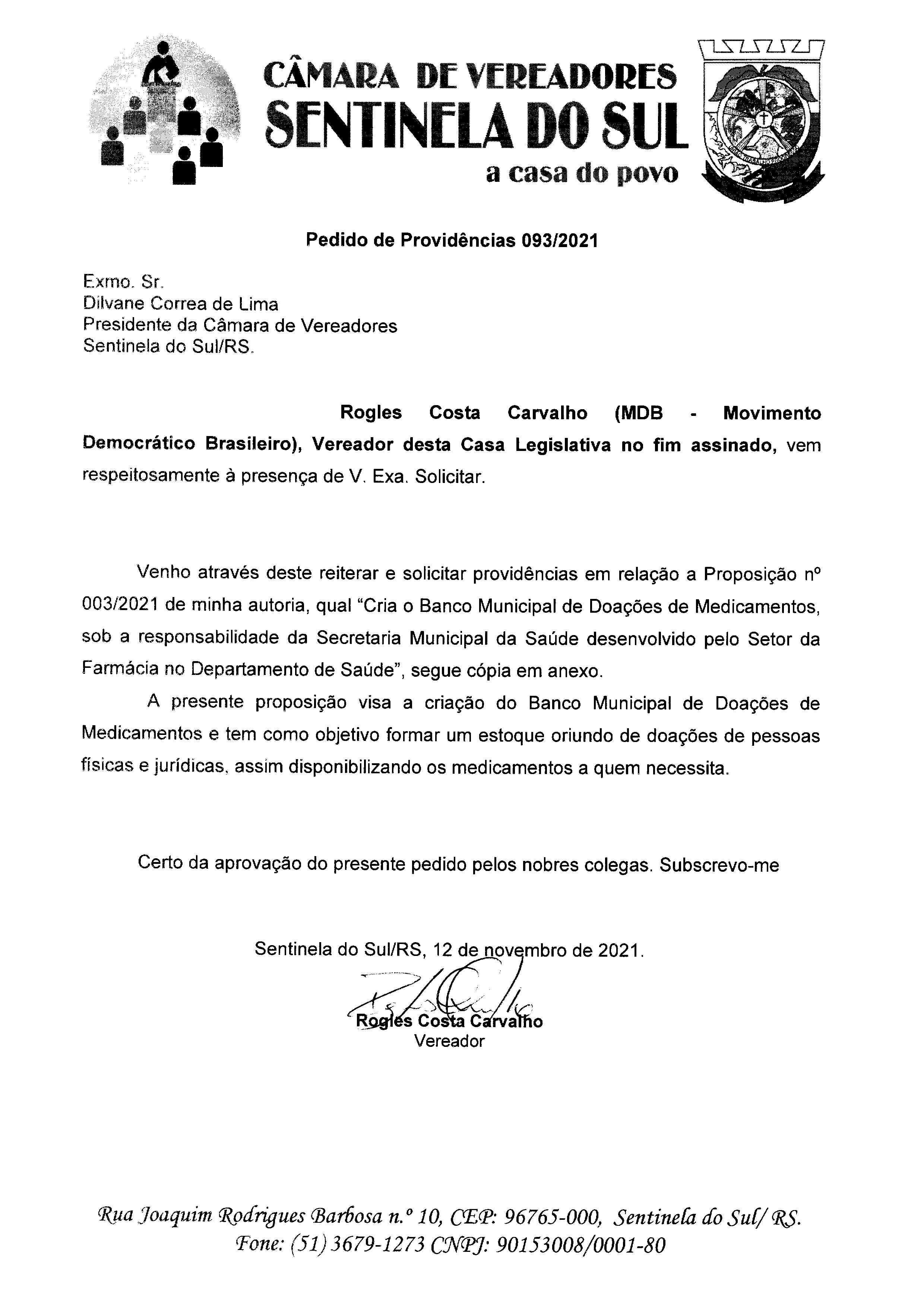 Pedido de Providências nº 093/2021