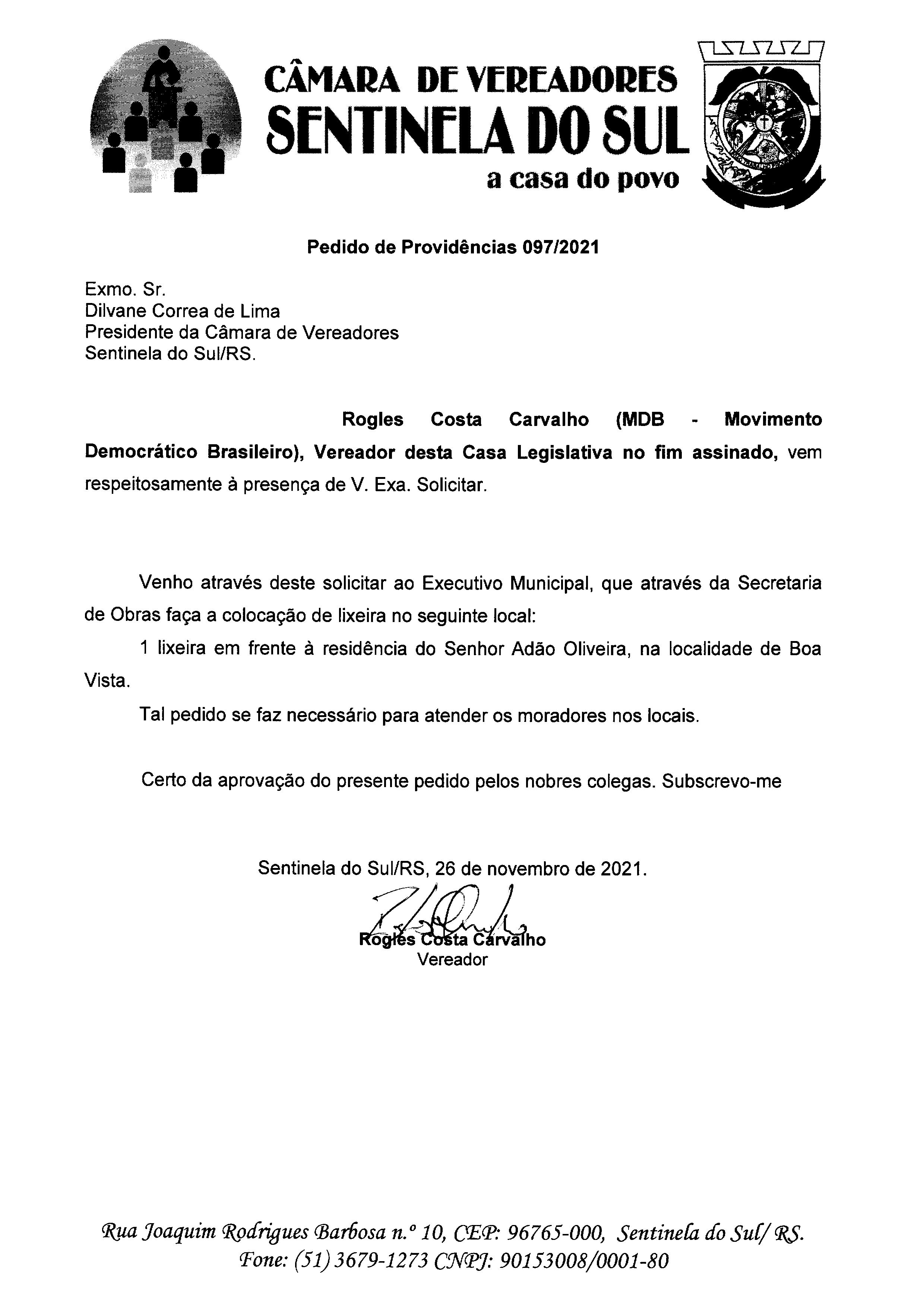 Pedido de Providências nº 097/2021