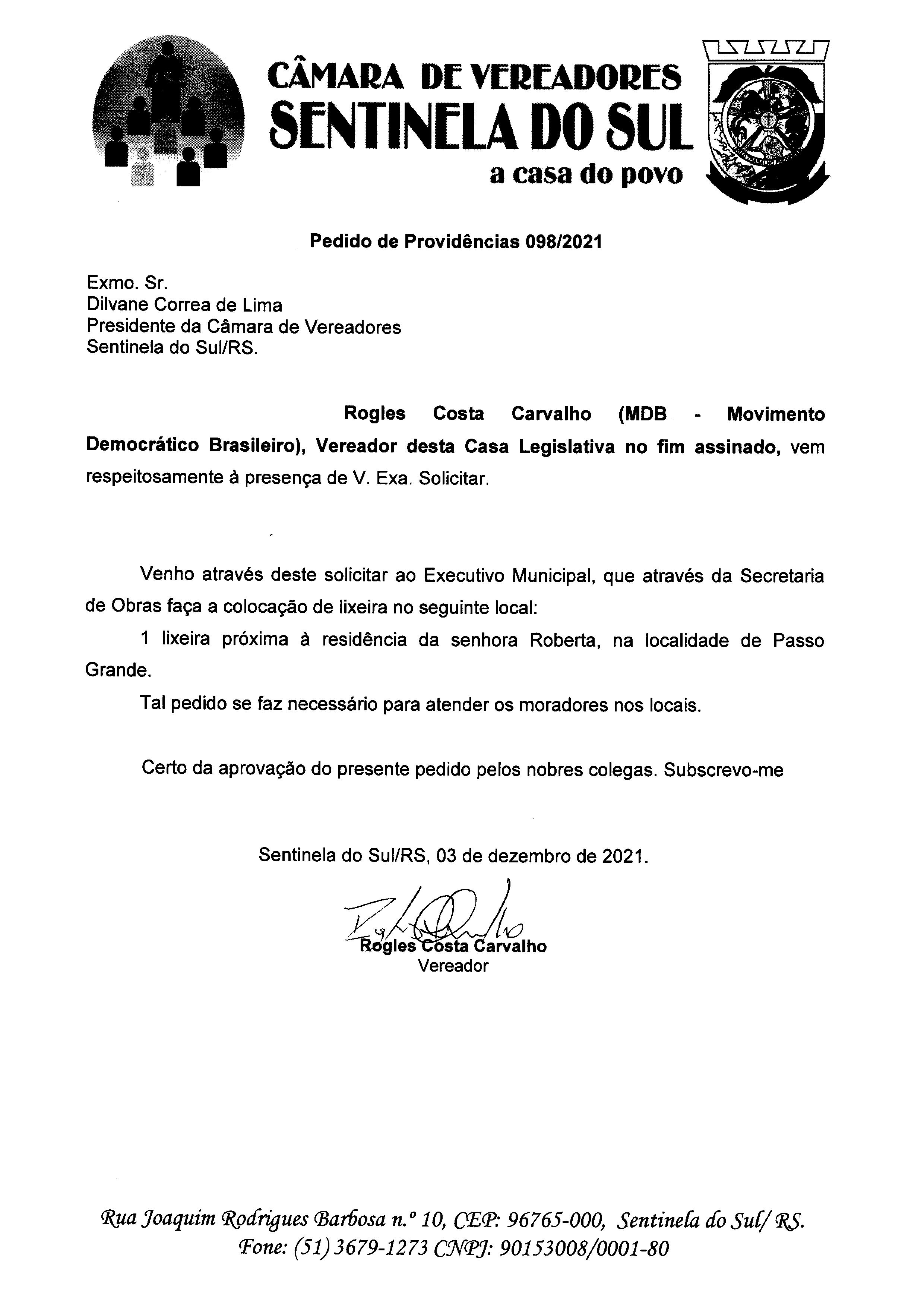 Pedido de Providências nº 098/2021