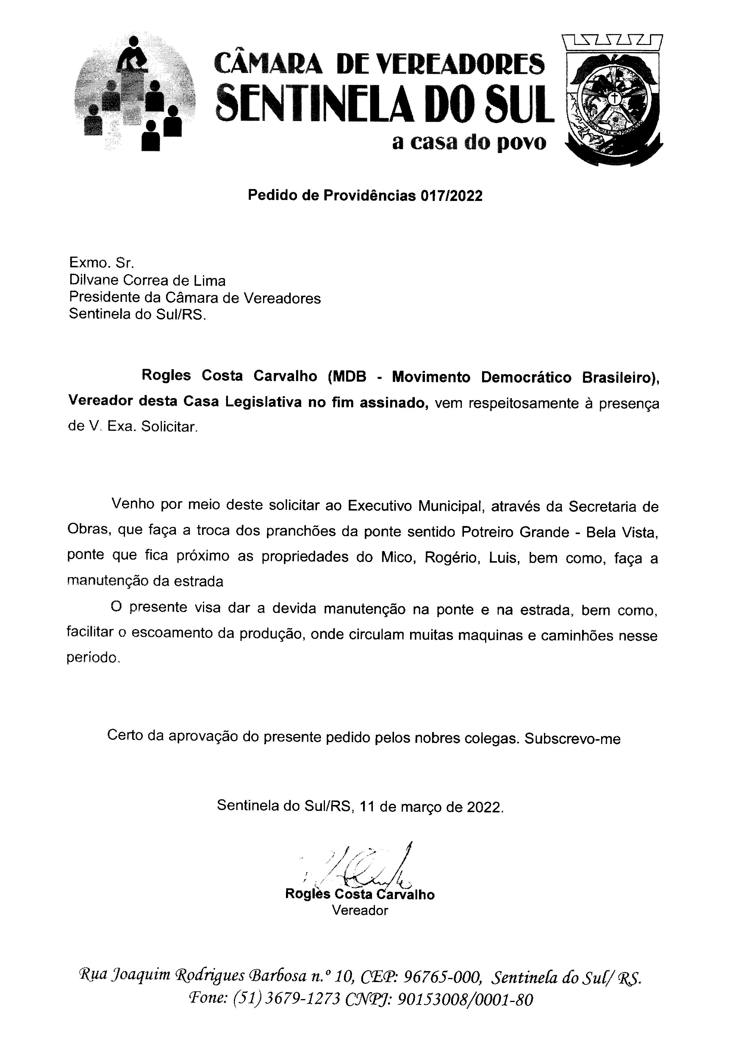 PEDIDO DE PROVIDÊNCIAS Nº 017/2022