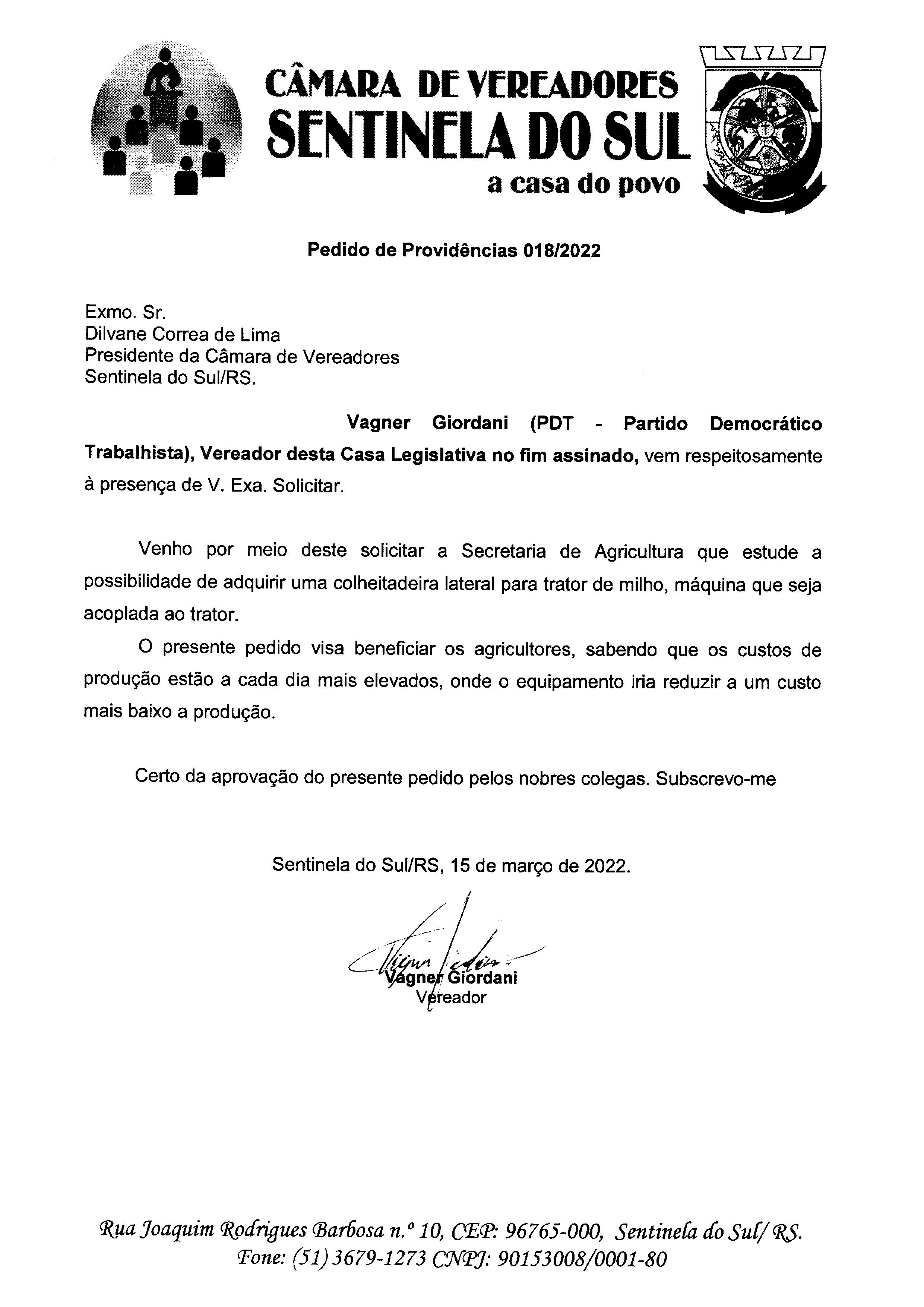 PEDIDO DE PROVIDÊNCIAS Nº 018/2022