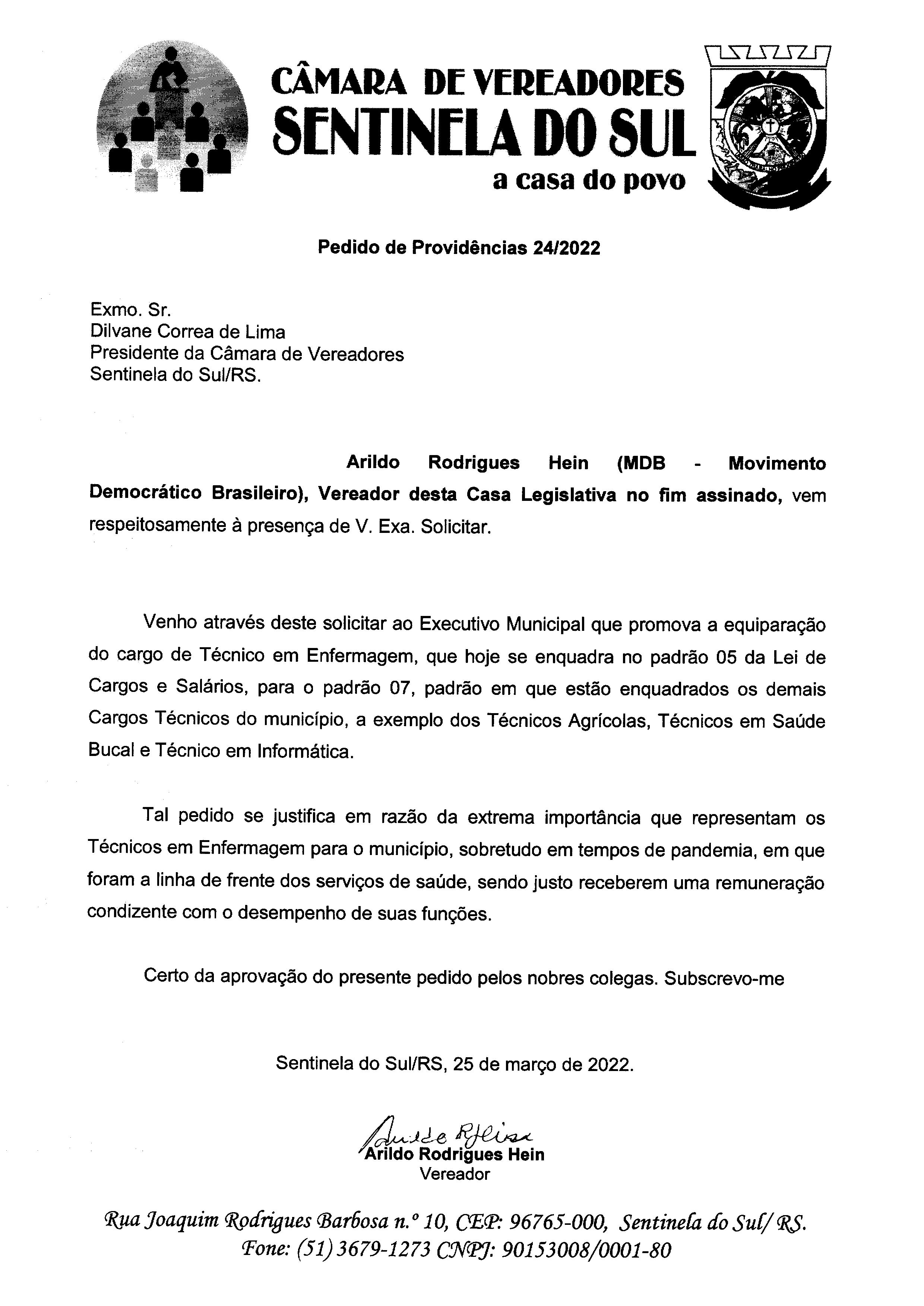 PEDIDO DE PROVIDÊNCIAS Nº 024/2022