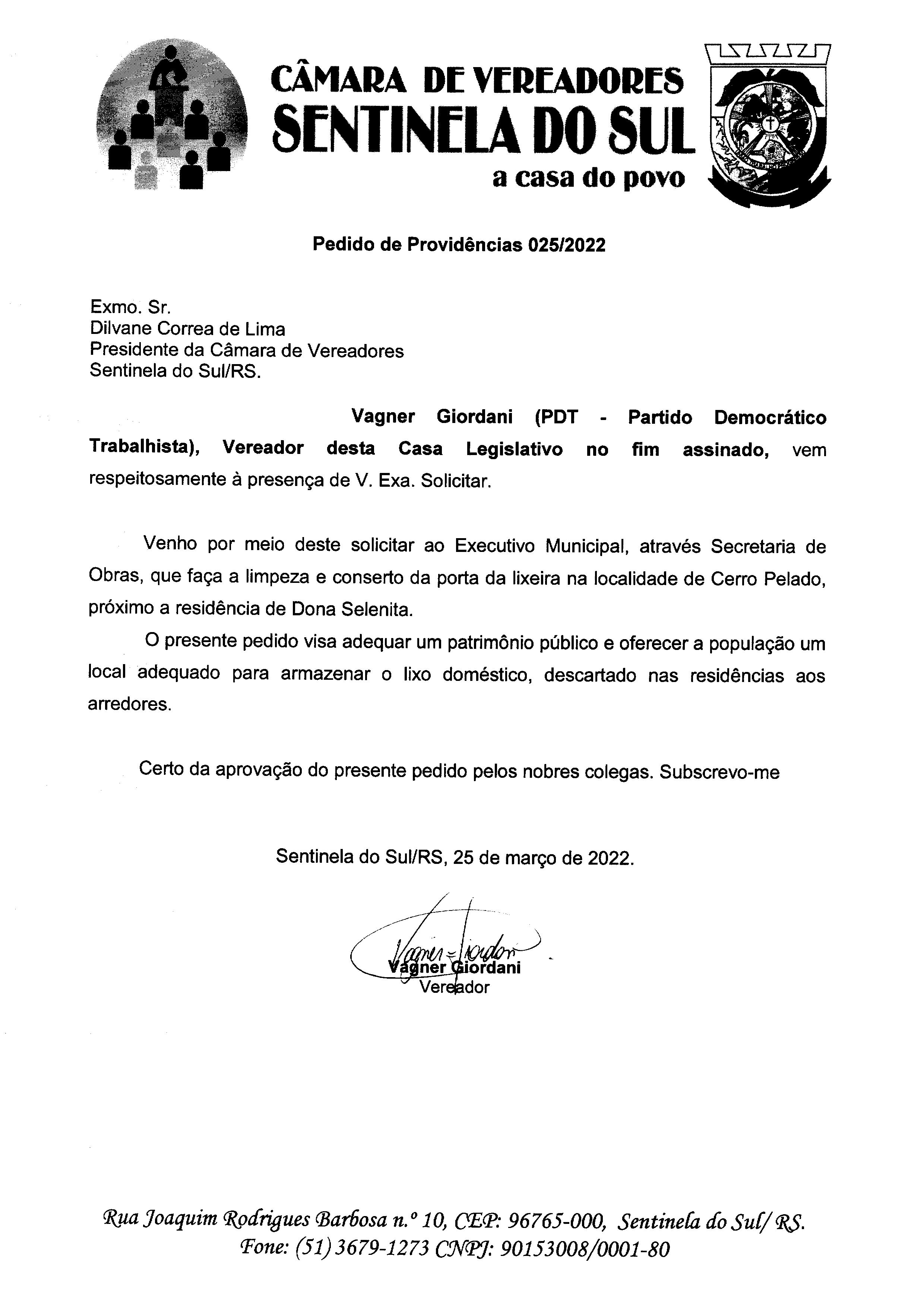 PEDIDO DE PROVIDÊNCIAS Nº 025/2022
