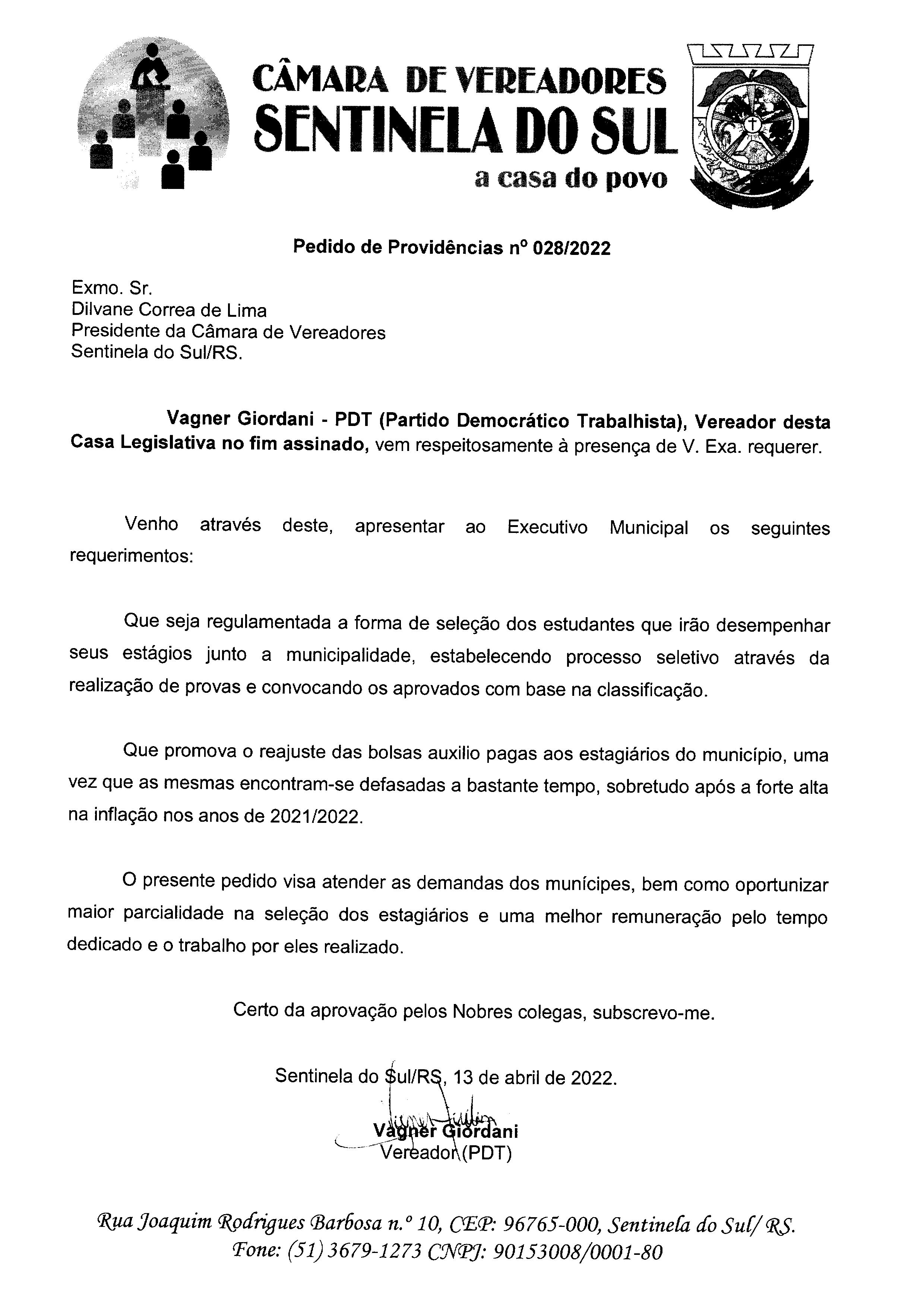 PEDIDO DE PROVIDÊNCIAS Nº 028/2022