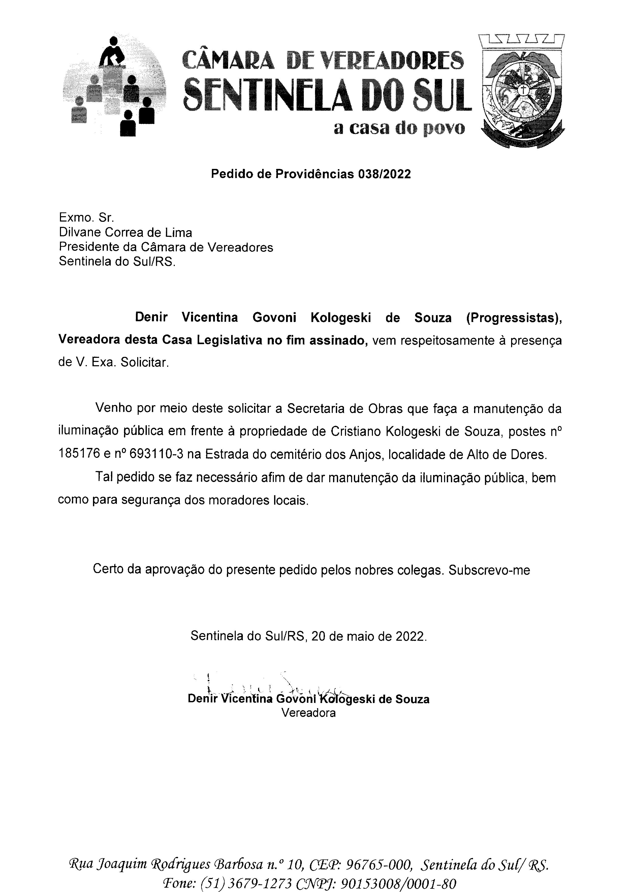 PEDIDO DE PROVIDÊNCIAS Nº 038/2022