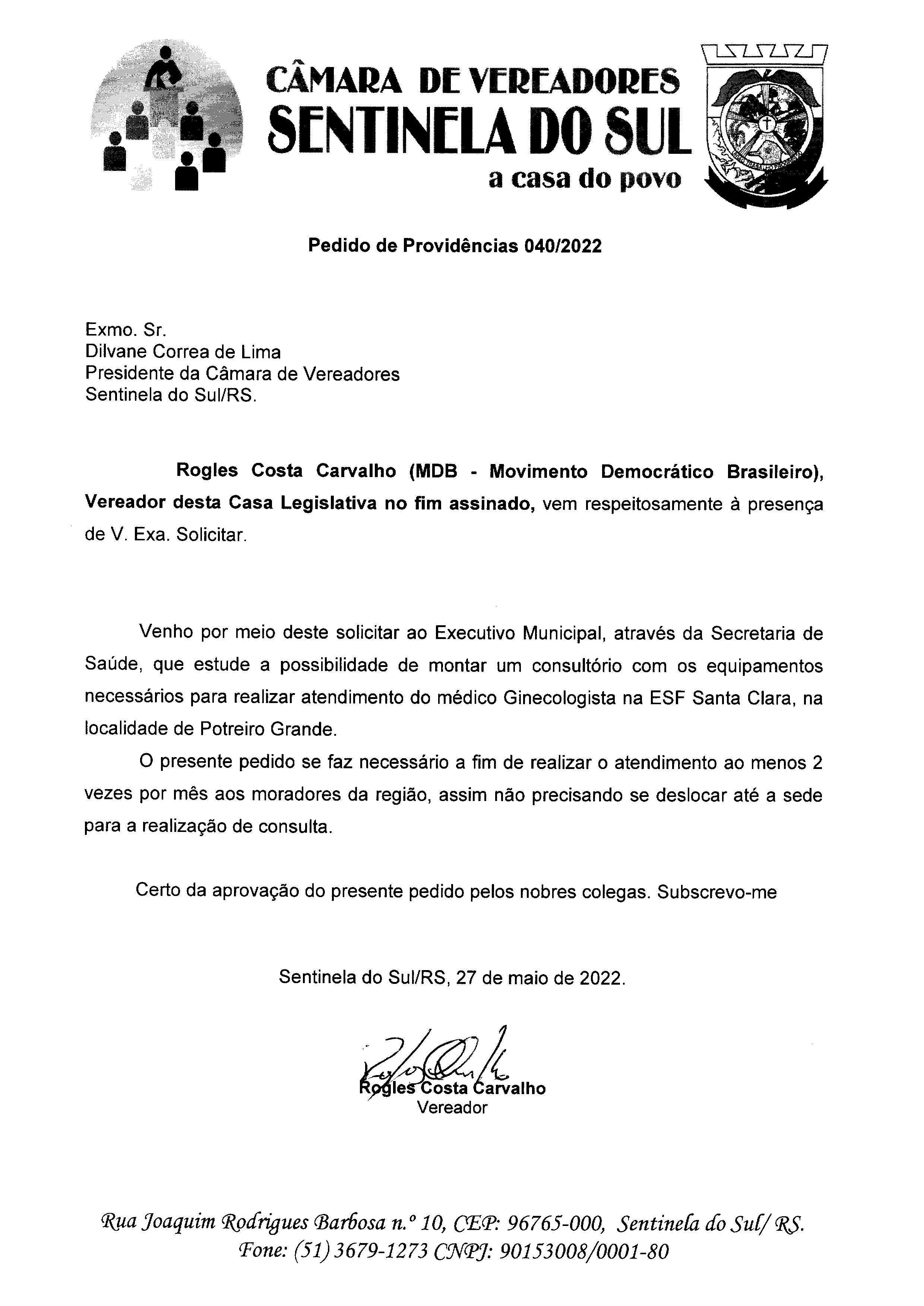 PEDIDO DE PROVIDÊNCIAS Nº 040/2022