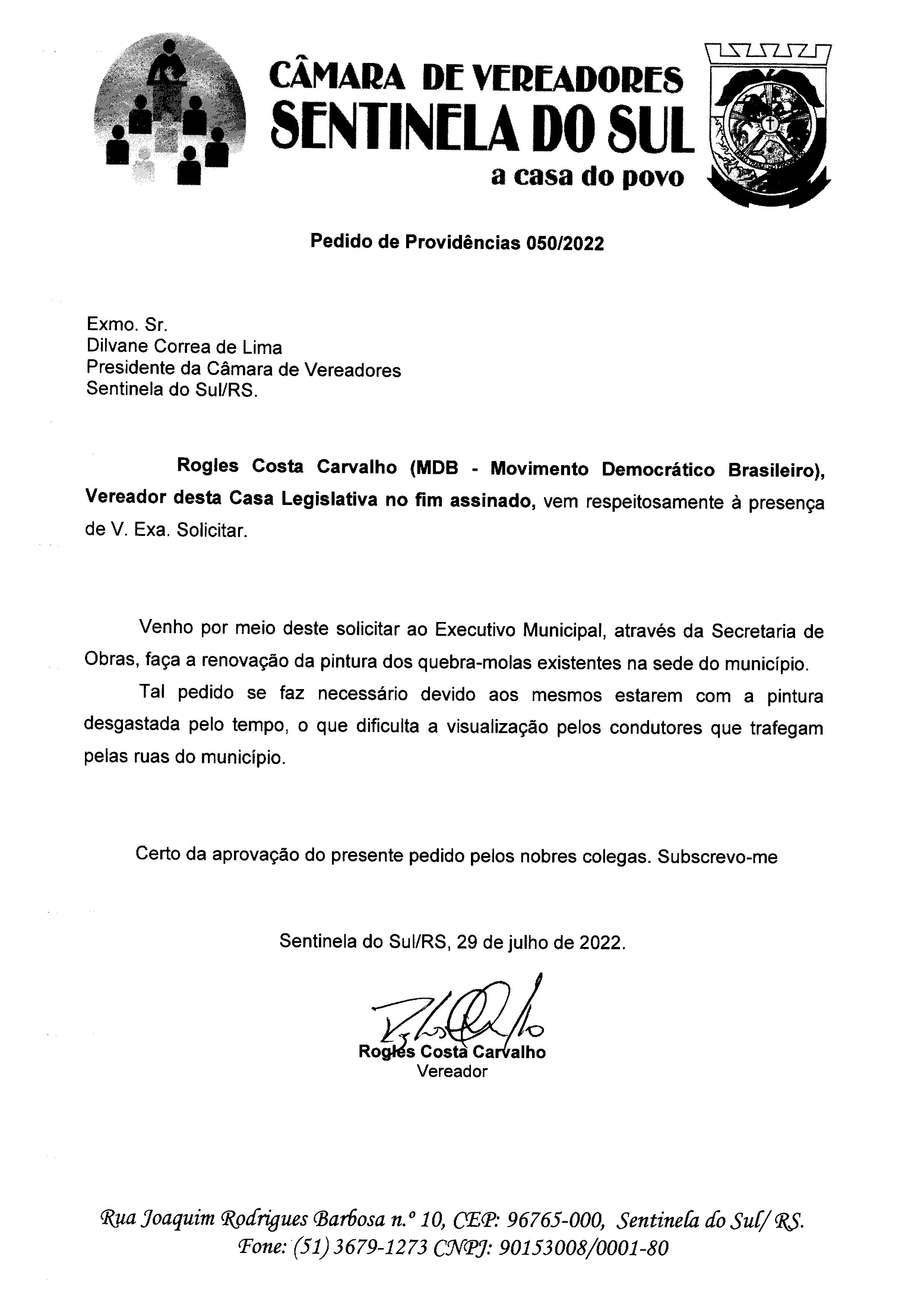 PEDIDO DE PROVIDÊNCIAS Nº 050/2022