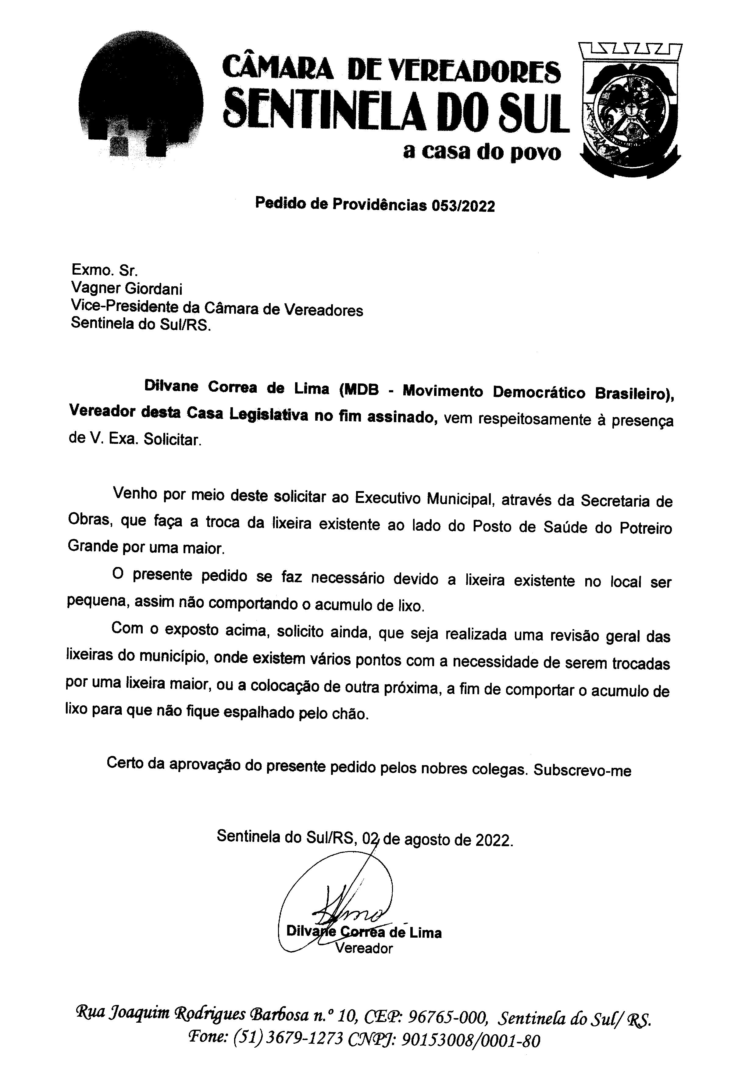 PEDIDO DE PROVIDÊNCIAS Nº 053/2022