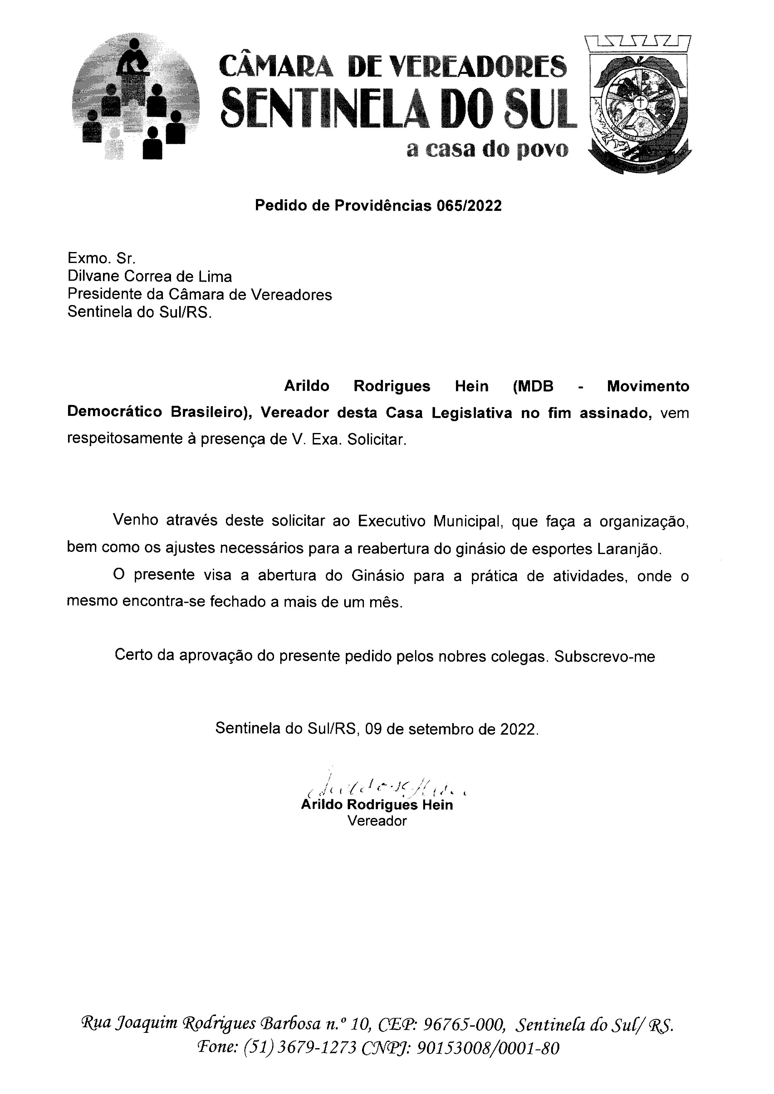 PEDIDO DE PROVIDÊNCIAS Nº 065/2022