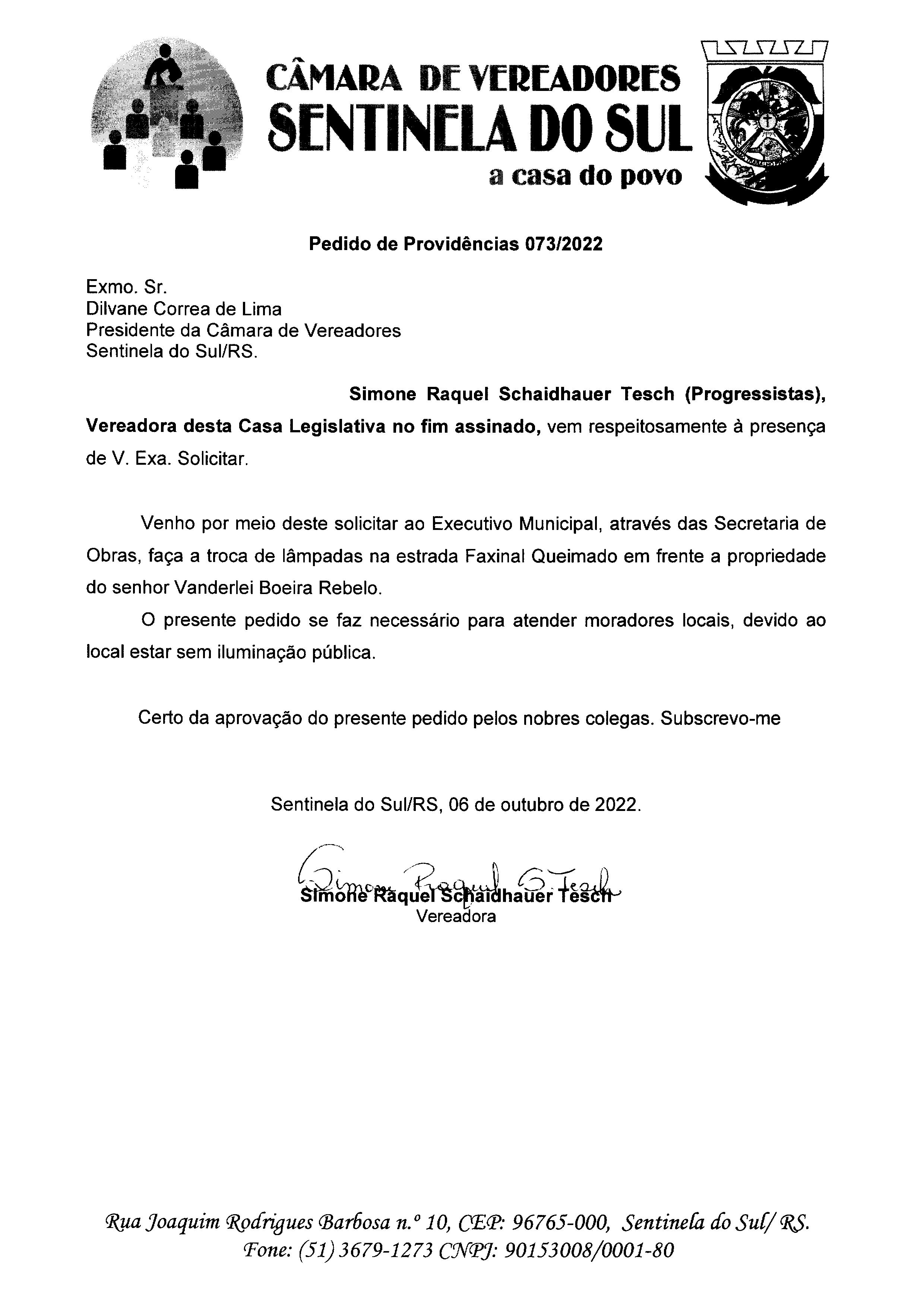 PEDIDO DE PROVIDÊNCIAS Nº 073/2022