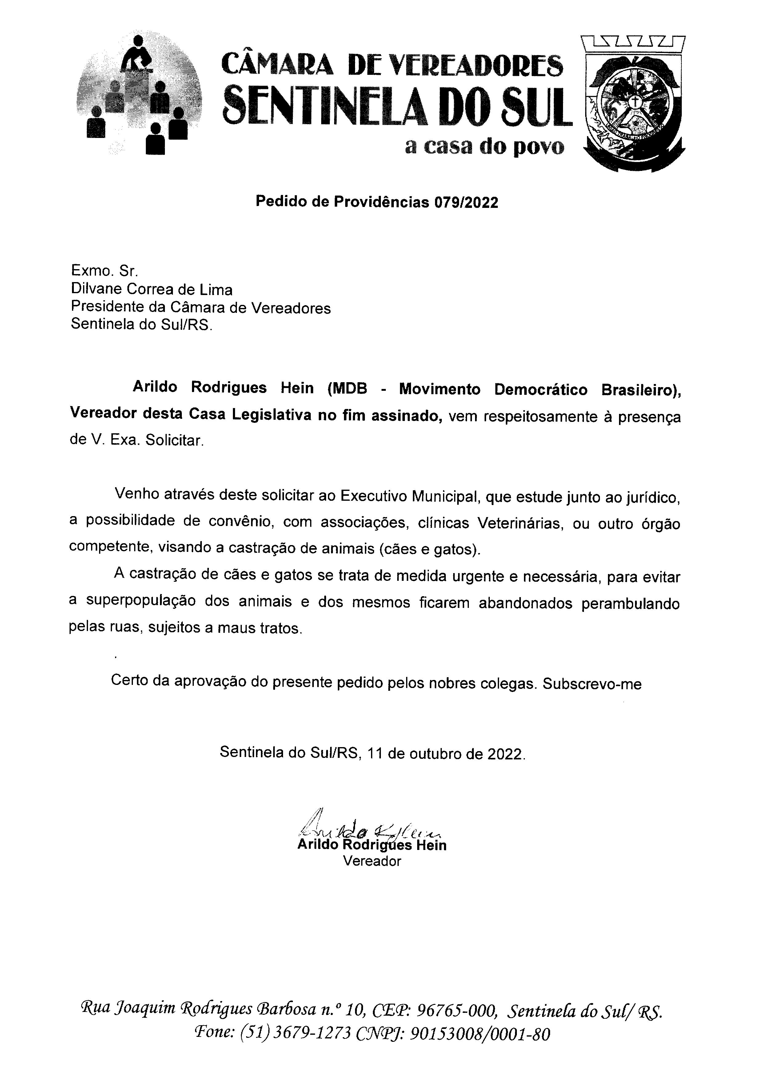 PEDIDO DE PROVIDÊNCIAS Nº 079/2022