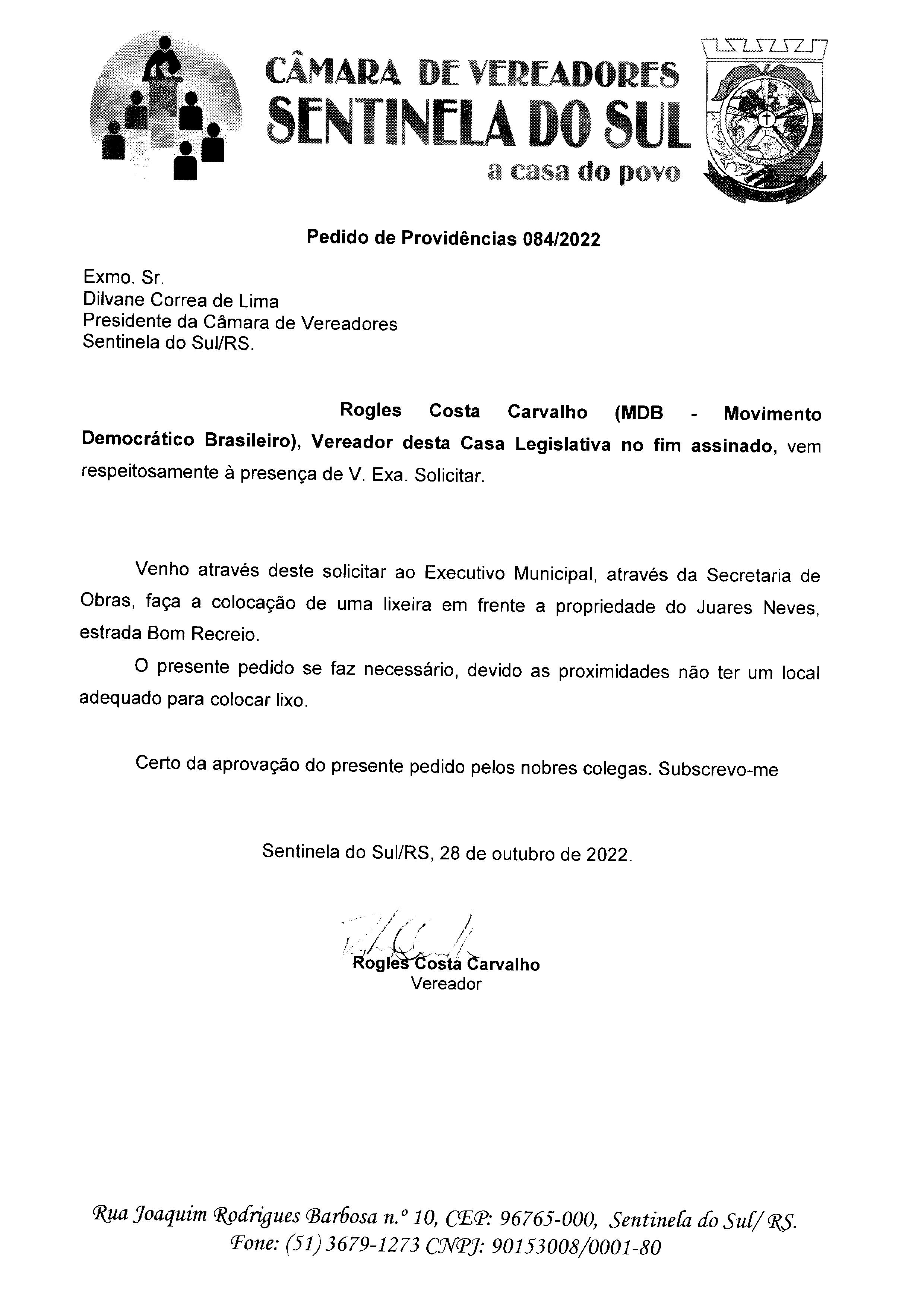 PEDIDO DE PROVIDÊNCIAS Nº 084/2022