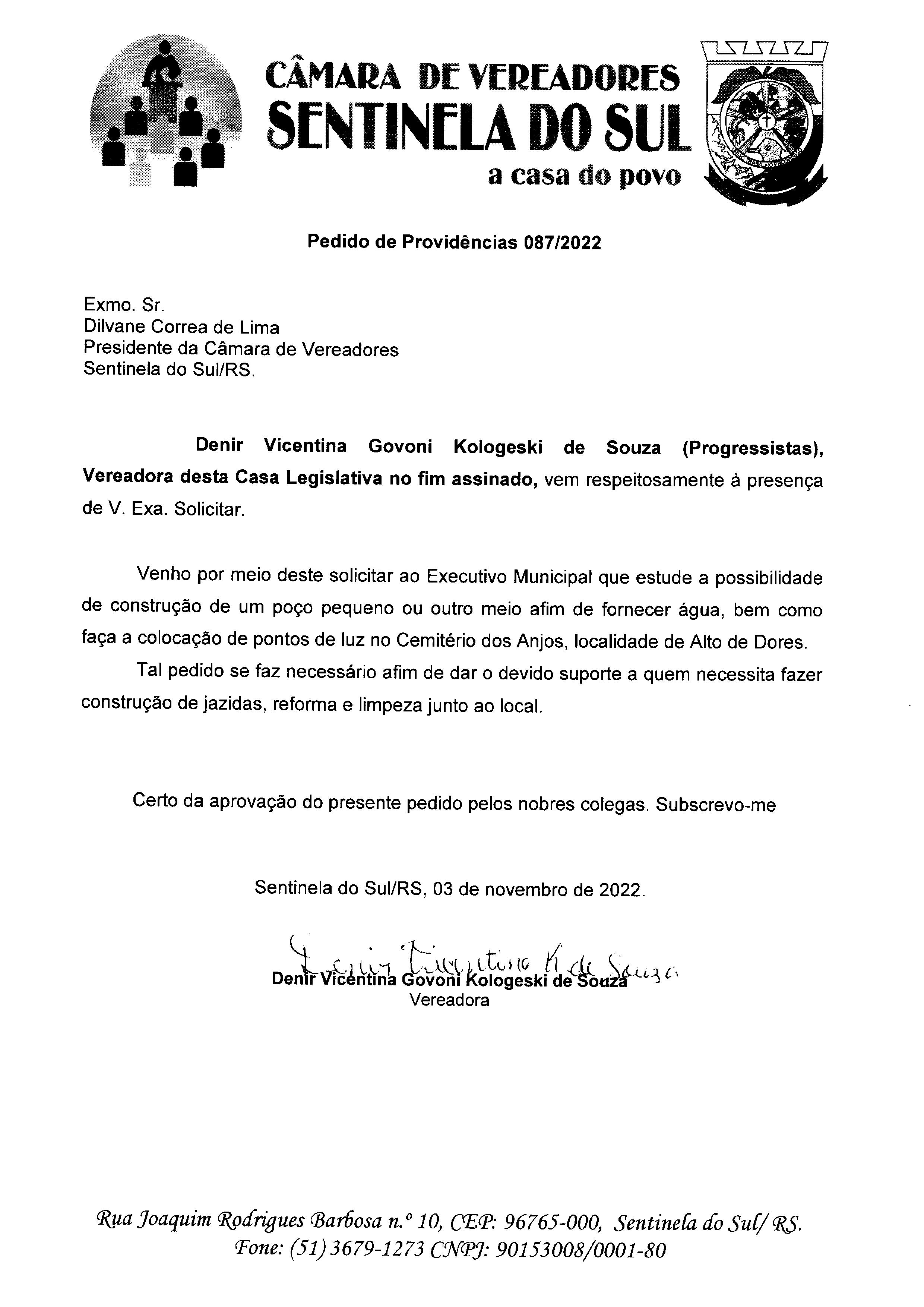 PEDIDO DE PROVIDÊNCIAS Nº 087/2022