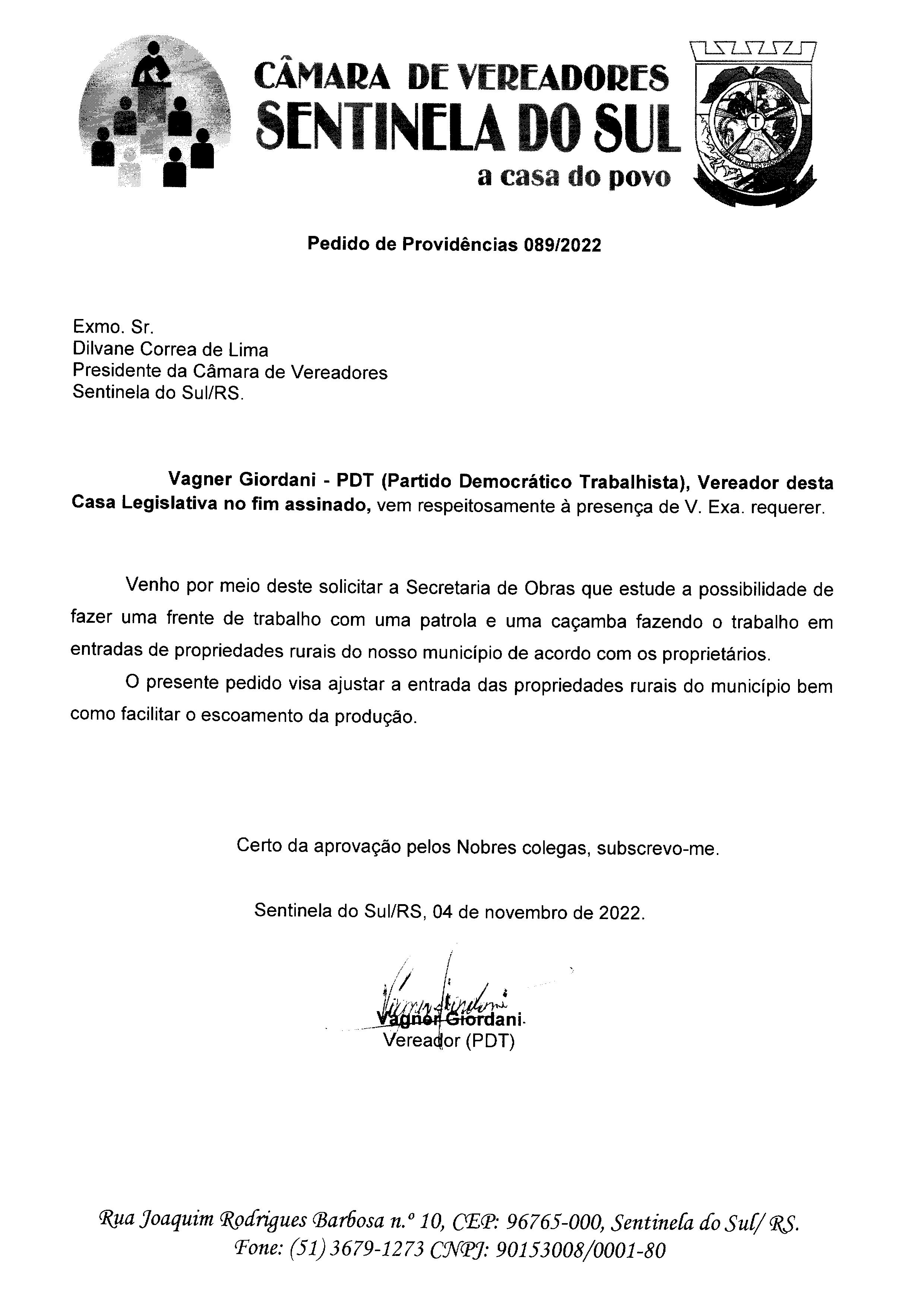 PEDIDO DE PROVIDÊNCIAS Nº 089/2022