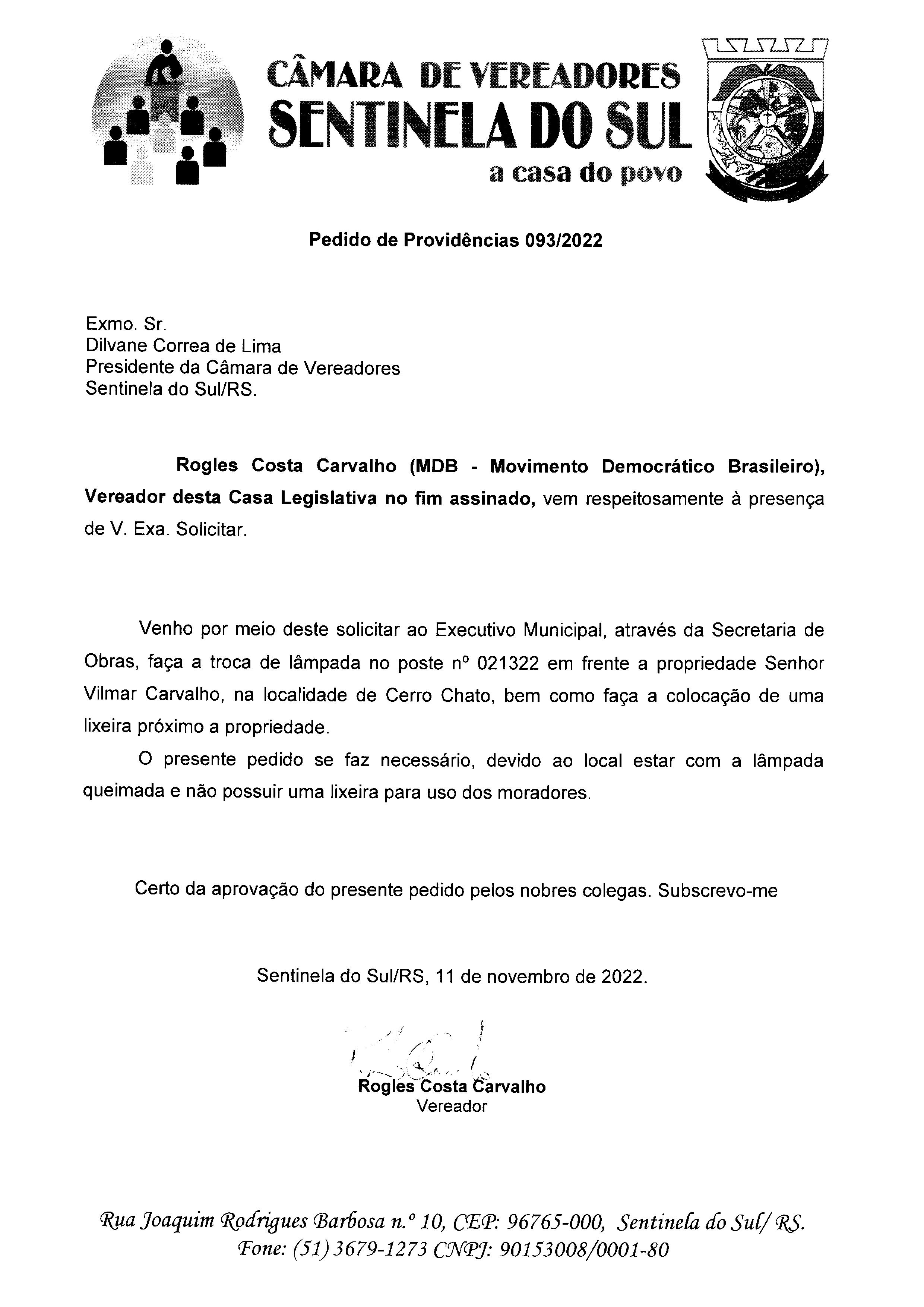 PEDIDO DE PROVIDÊNCIAS Nº 093/2022