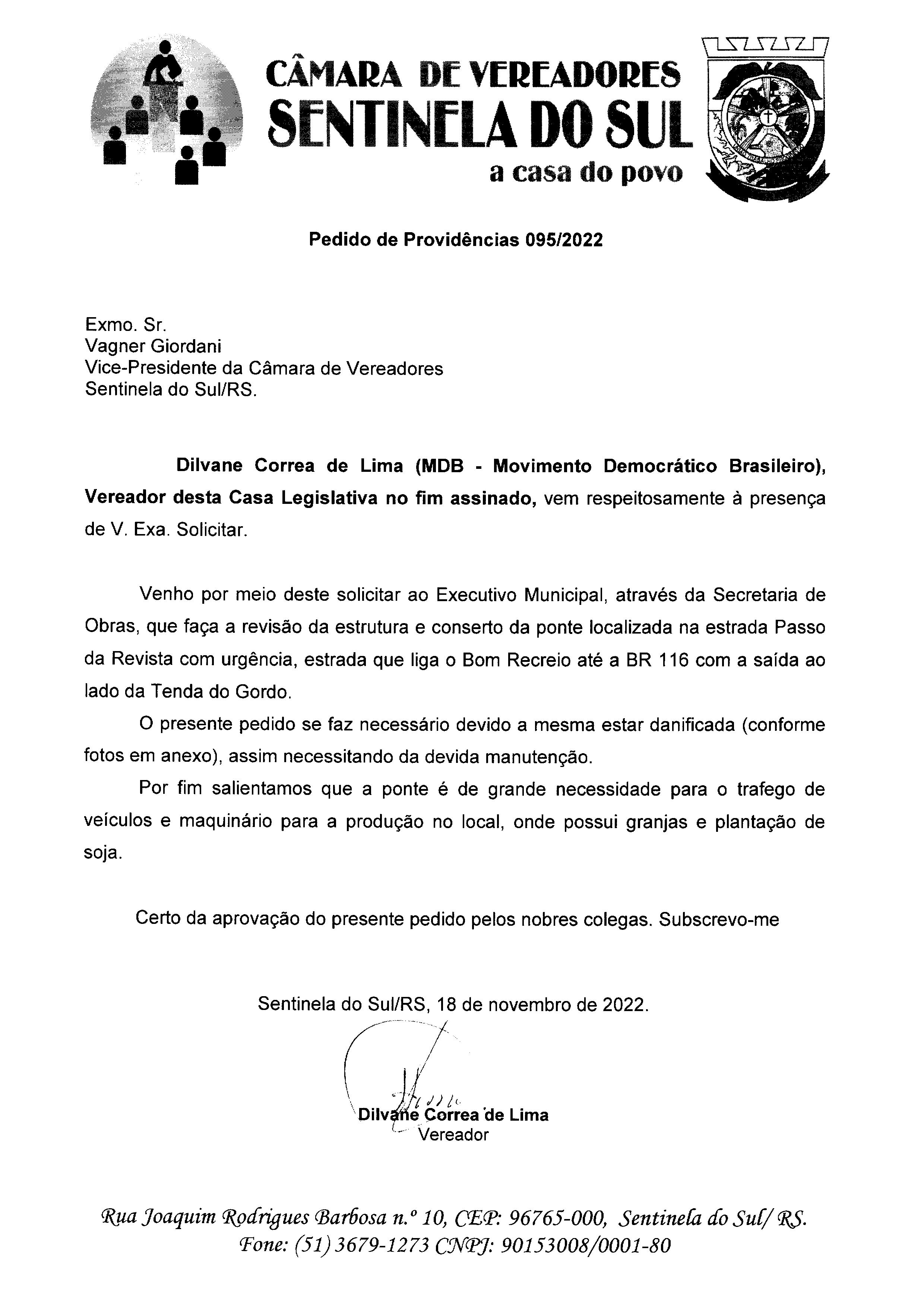 PEDIDO DE PROVIDÊNCIAS Nº 095/2022