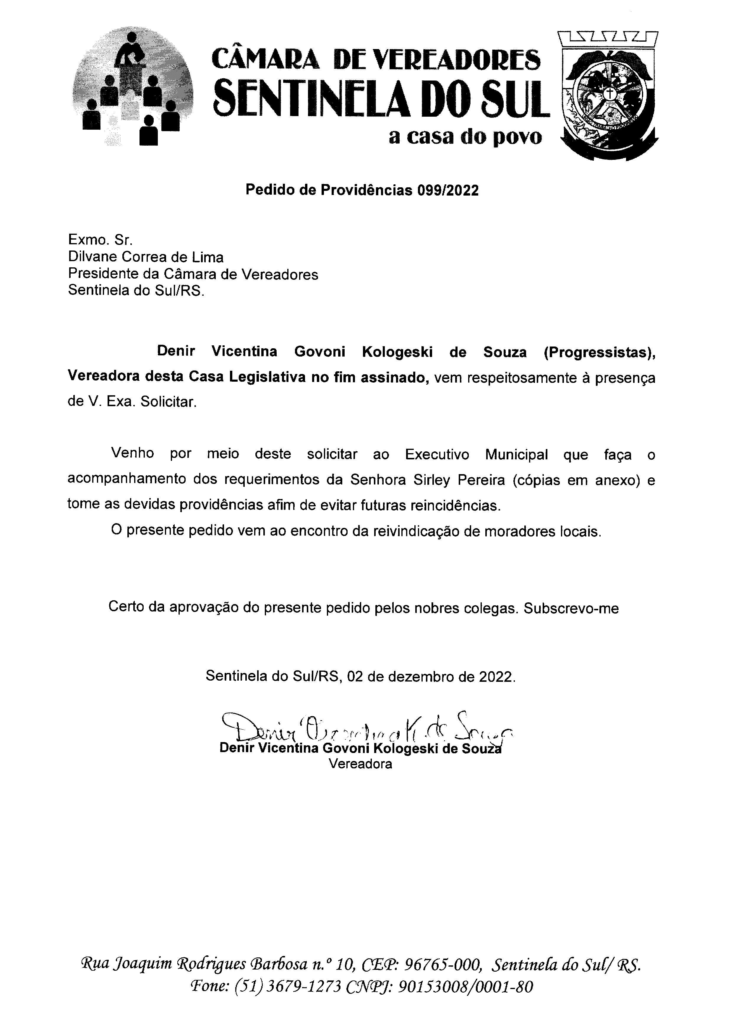 PEDIDO DE PROVIDÊNCIAS Nº 099/2022