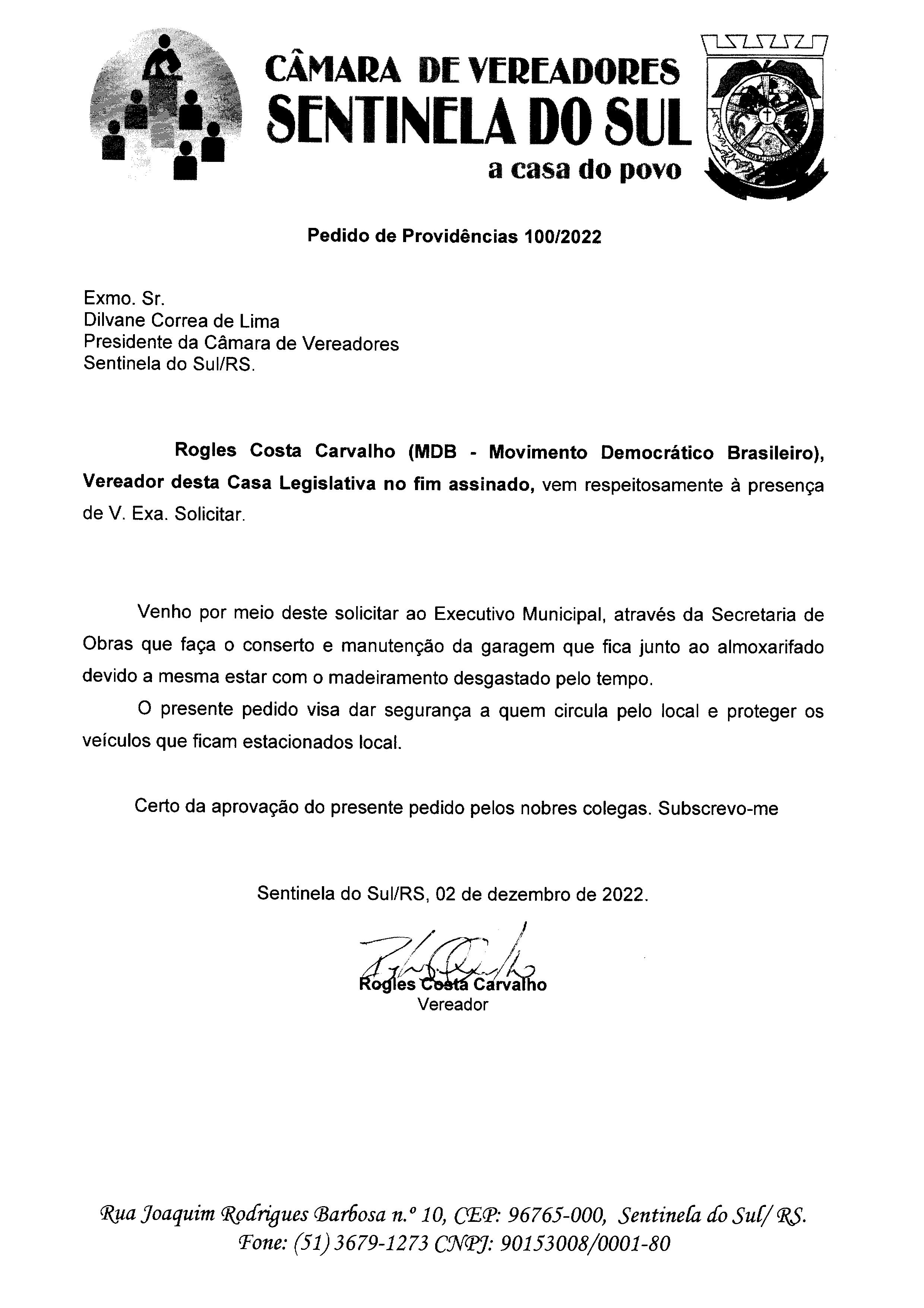 PEDIDO DE PROVIDÊNCIAS Nº 100/2022