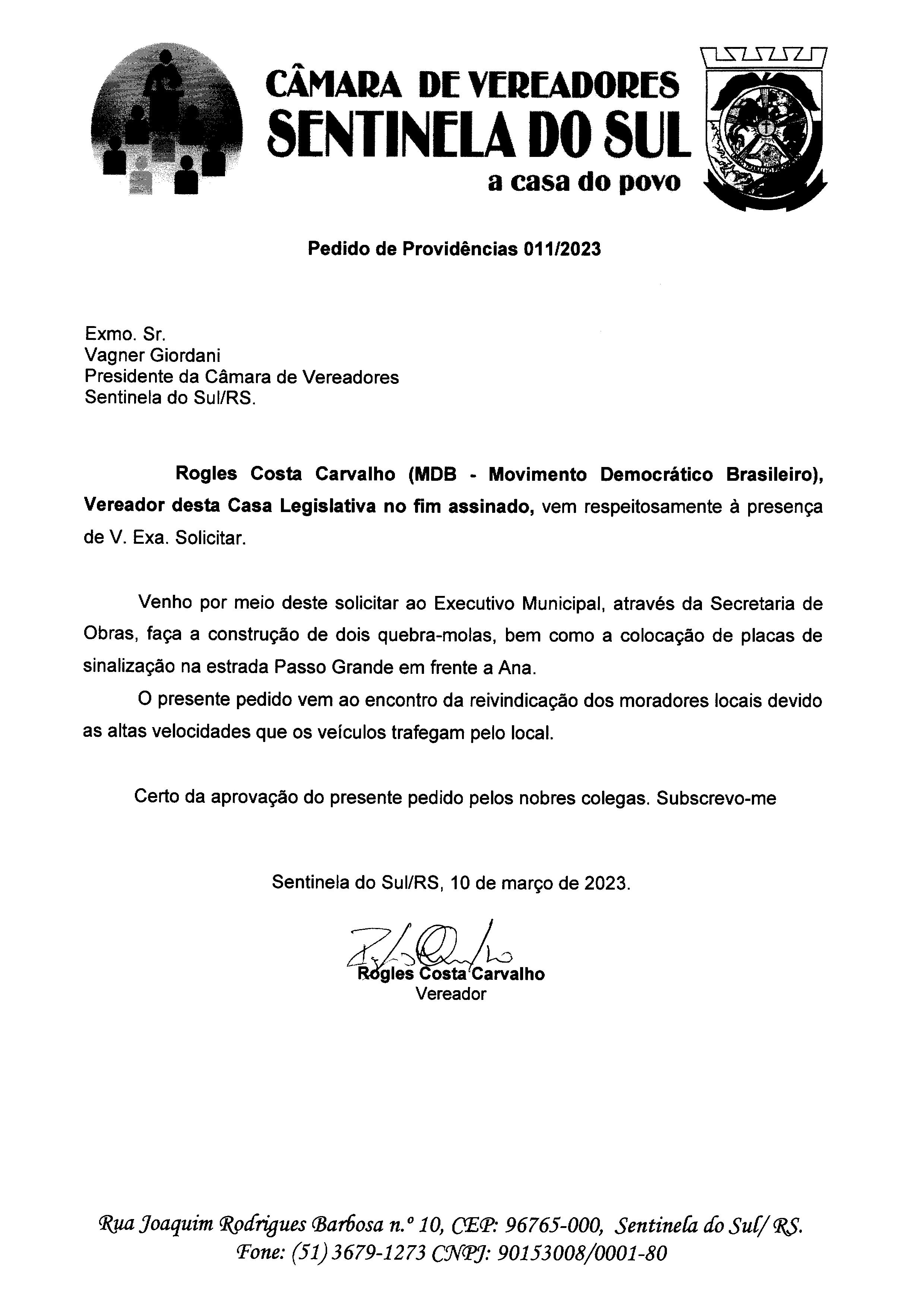PEDIDO DE PROVIDÊNCIAS Nº 011/2023