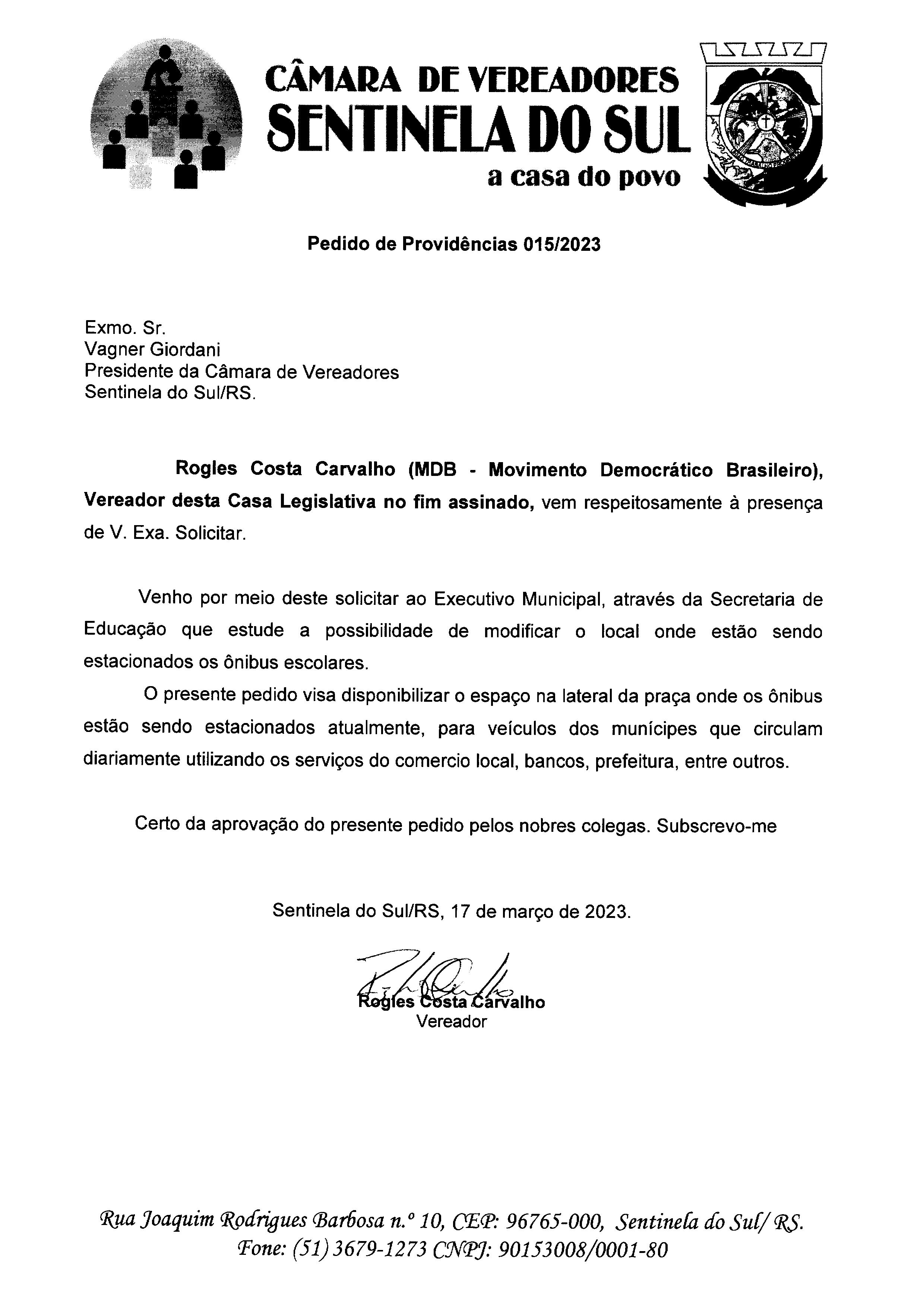 PEDIDO DE PROVIDÊNCIAS Nº 015/2023