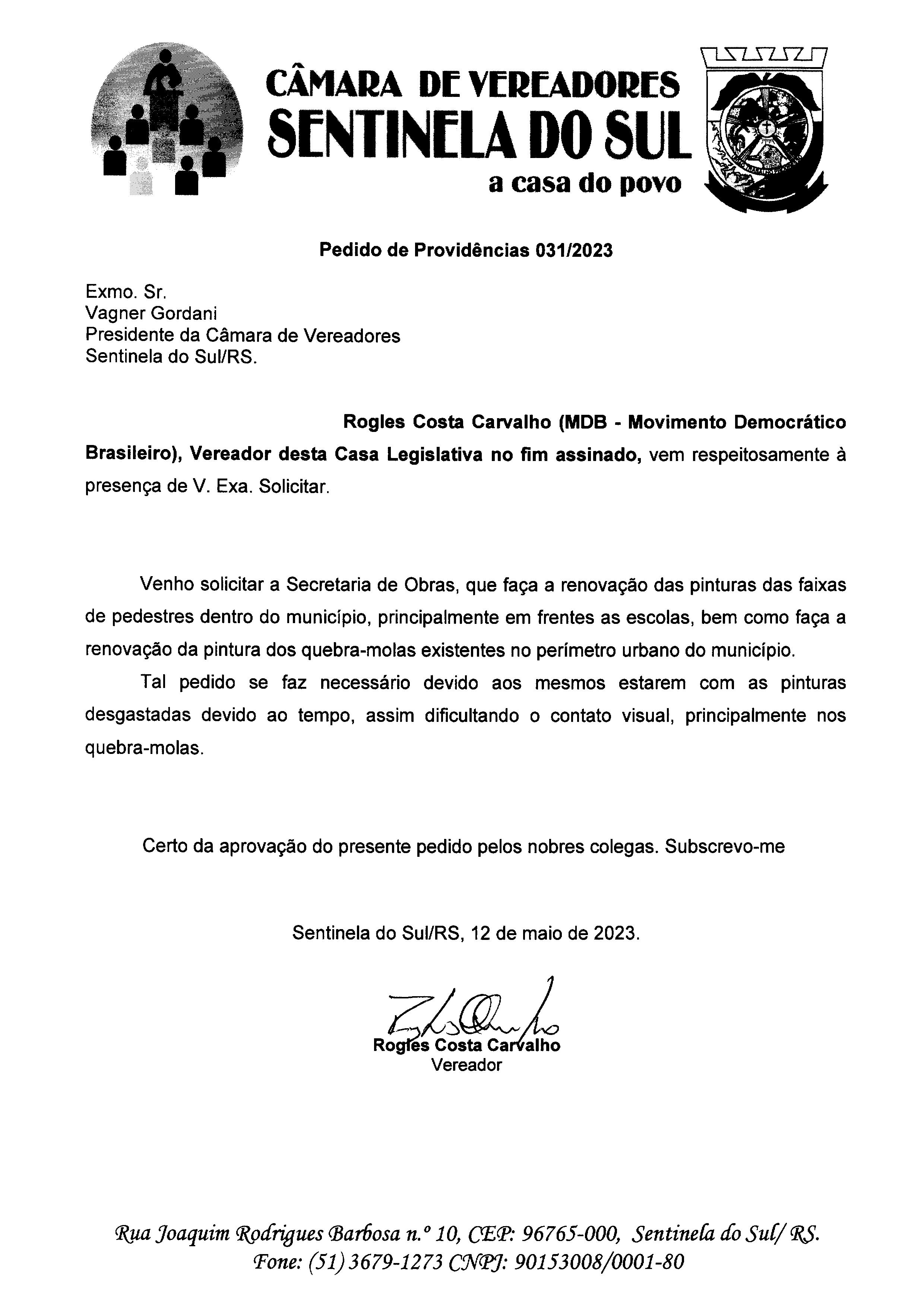 PEDIDO DE PROVIDÊNCIAS Nº 031/2023