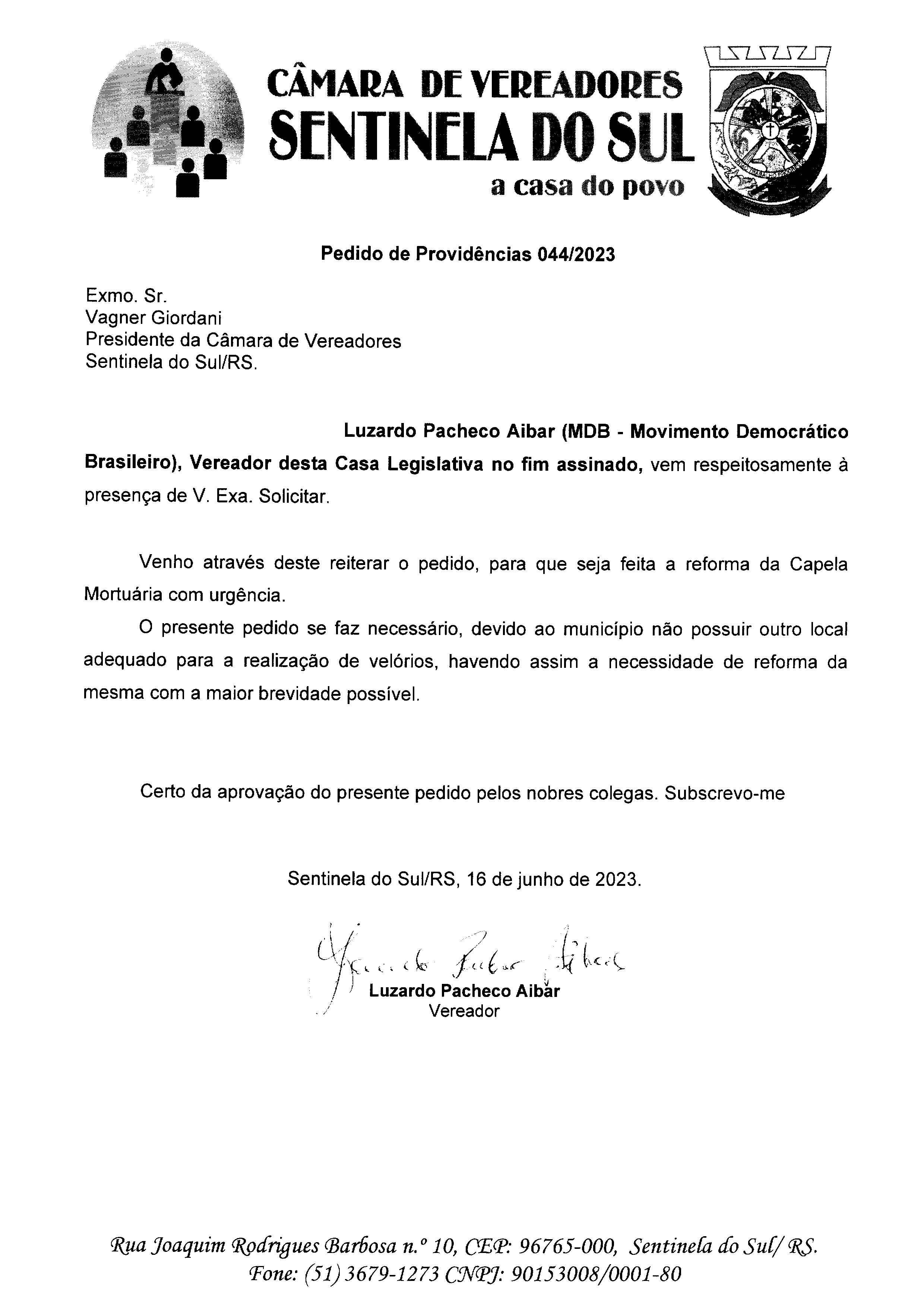 PEDIDO DE PROVIDÊNCIAS Nº 044/2023