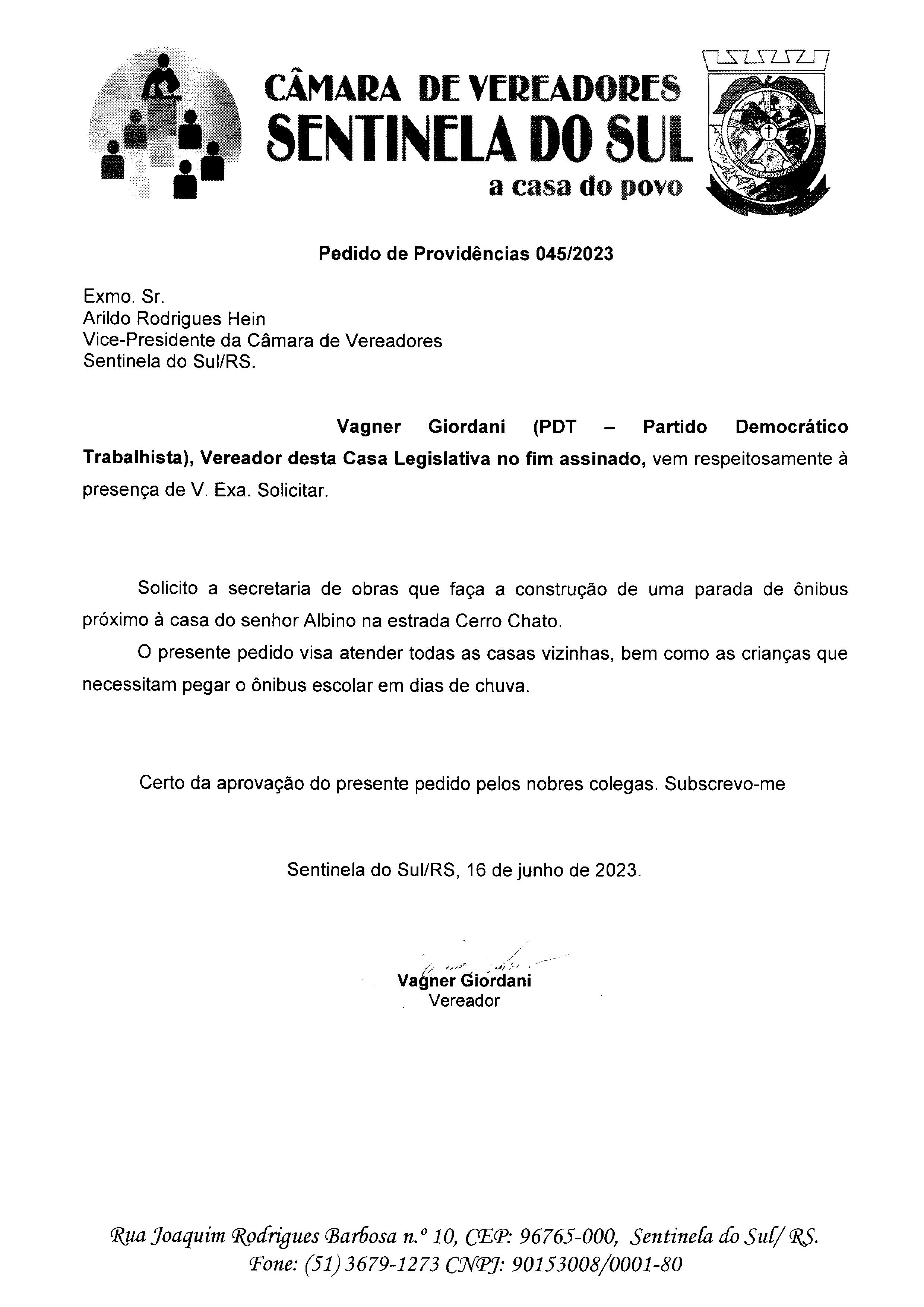 PEDIDO DE PROVIDÊNCIAS Nº 045/2023